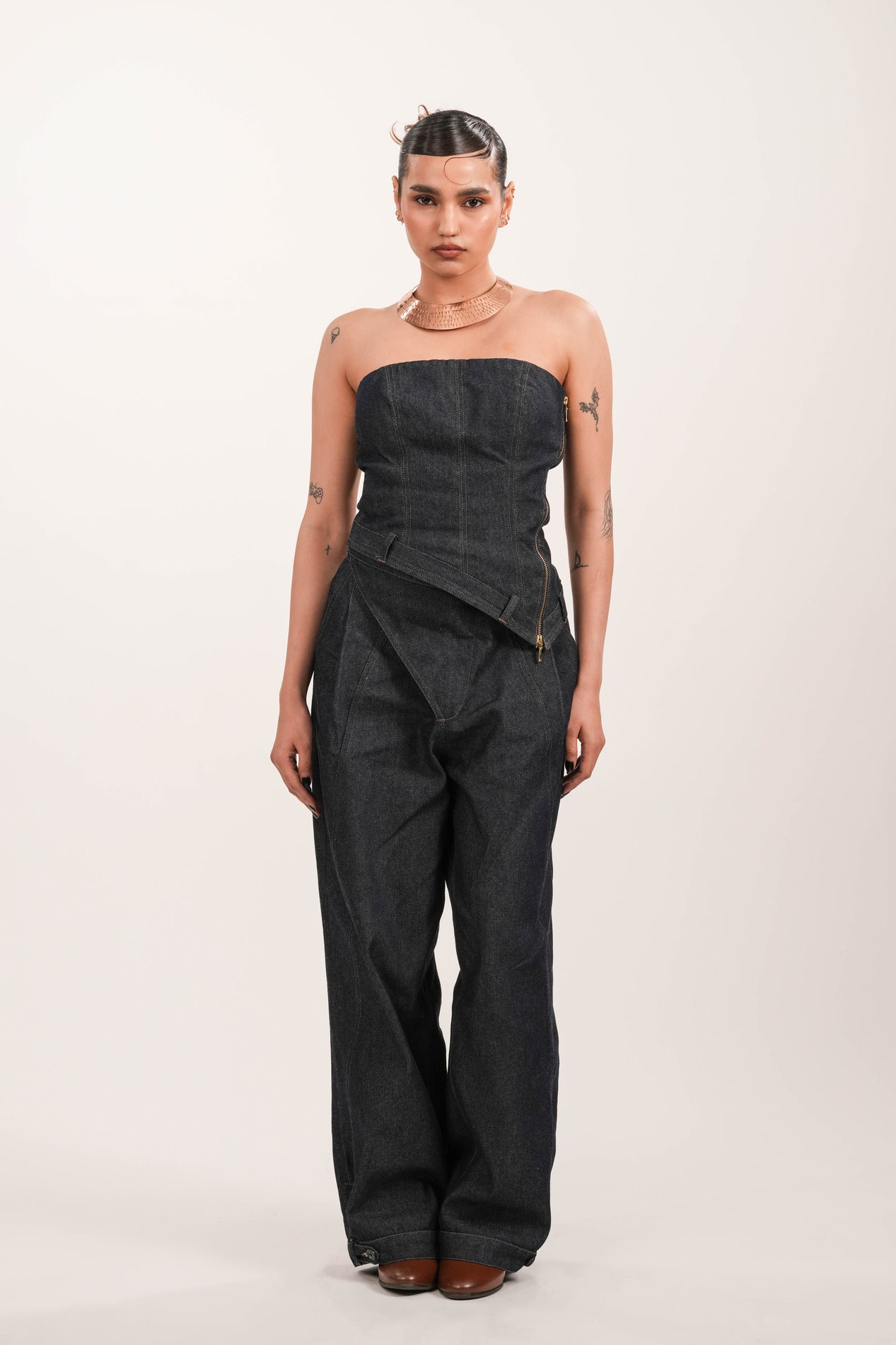 The Deconstructed Corset is a structured denim corset top featuring an exposed two-way zipper for adjustable fit and sculptural styling. Designed to balance structure and flexibility, this modern corset top offers versatile, statement-led wear.