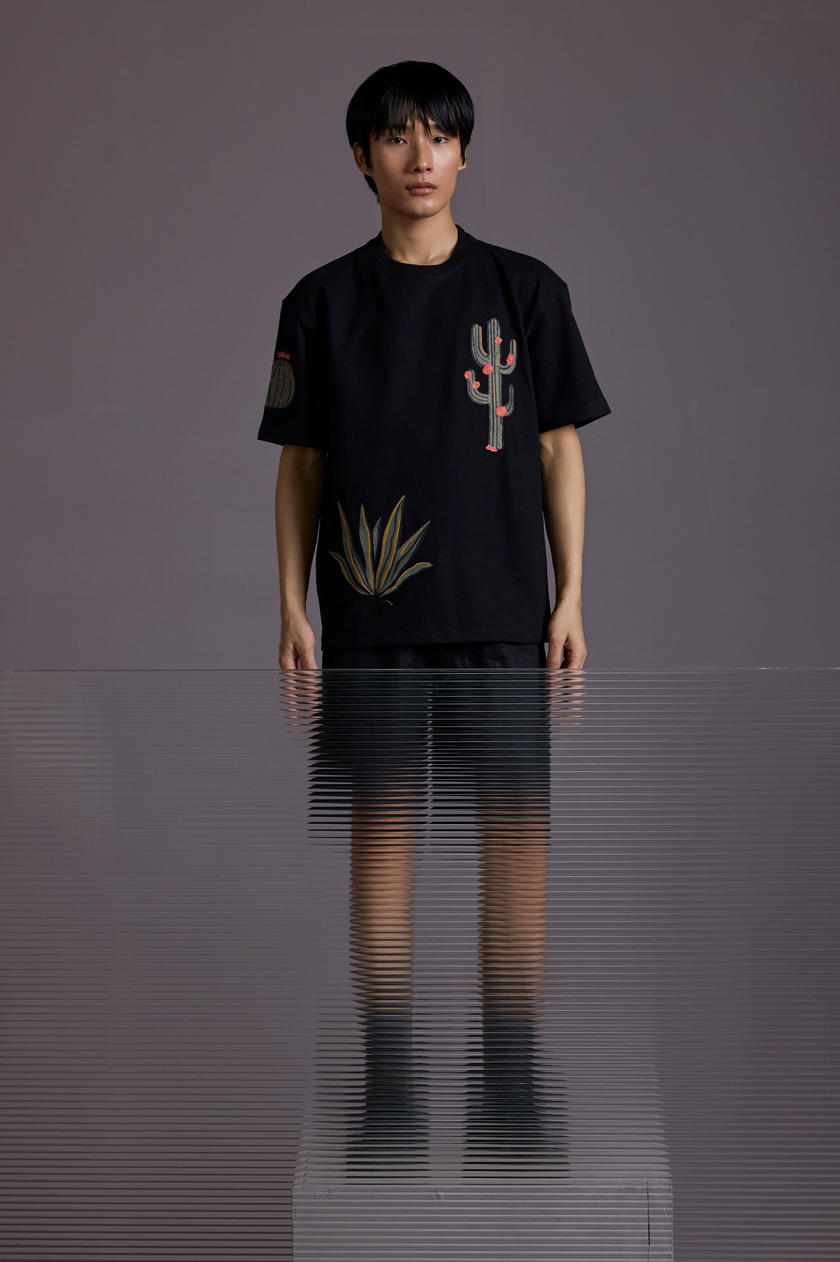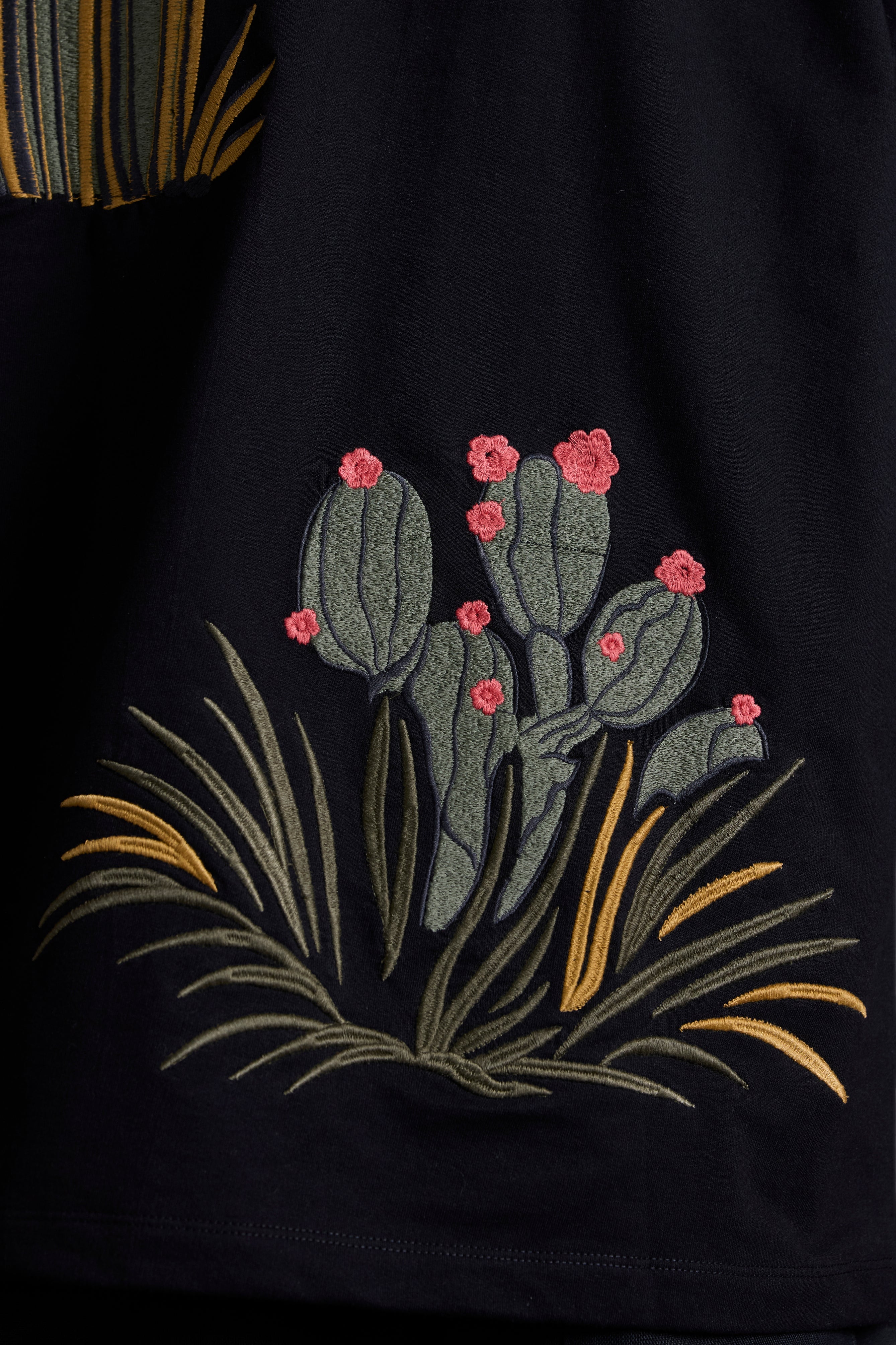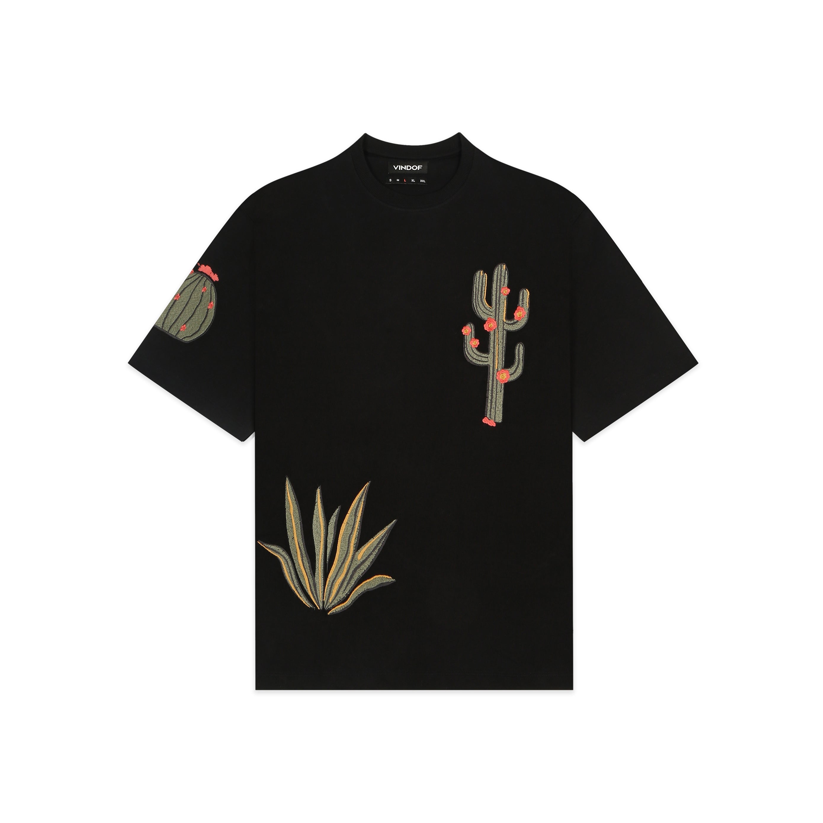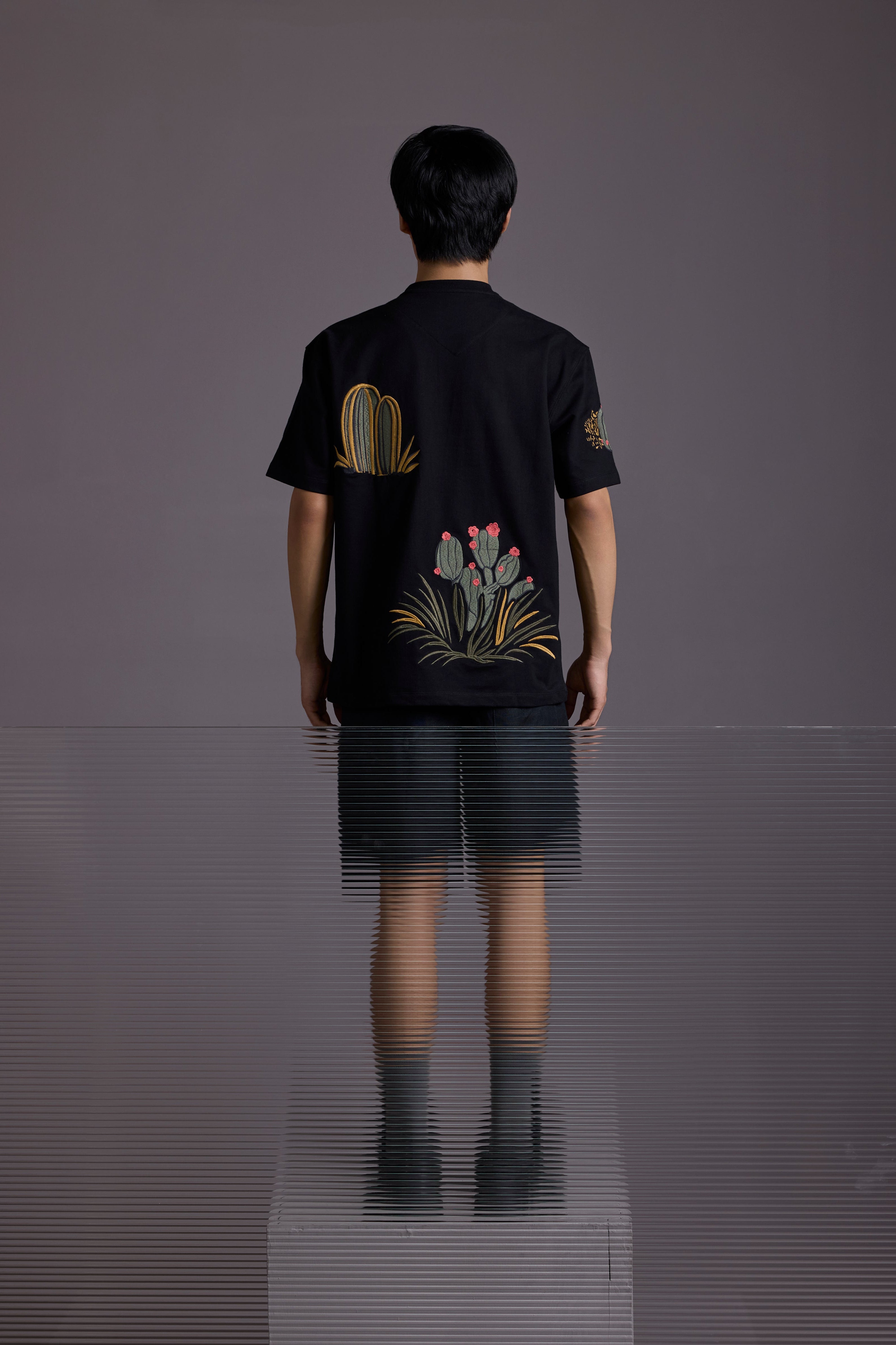 Crafted from 260 GSM French terry cotton, this heavyweight tee features intricate cactus-themed embroidery sprawled across the front, back, and sleeves.