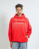 The mindset printed so the world reads it first — Deserve before Desire. Red shell with cold rivets makes this a discipline-first garment, not a feel-first one.