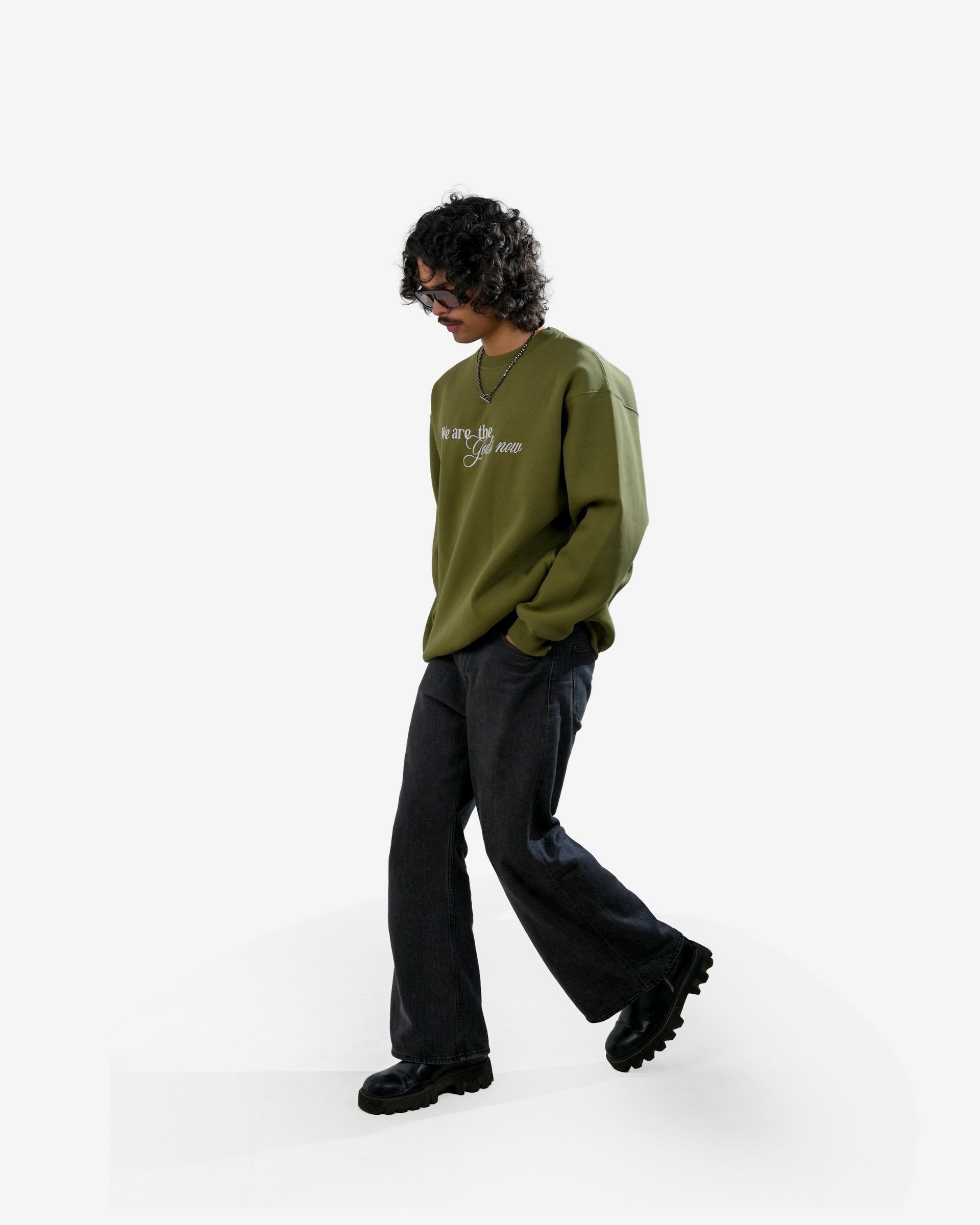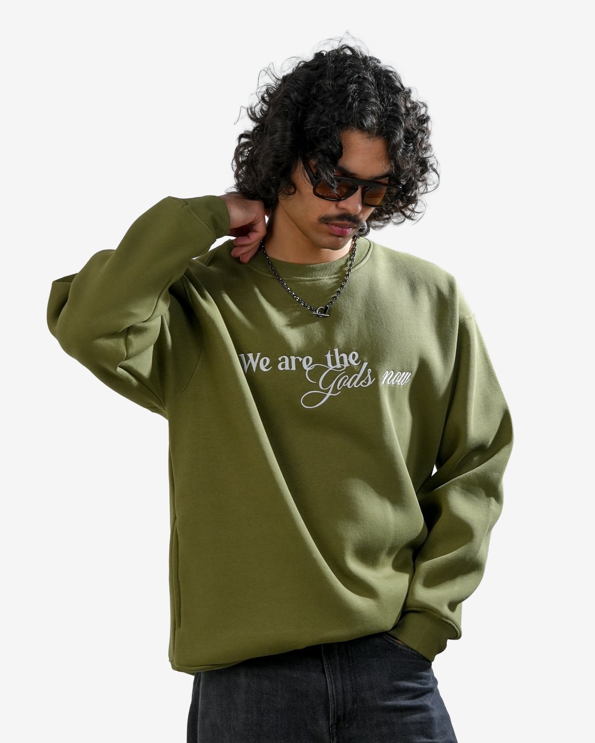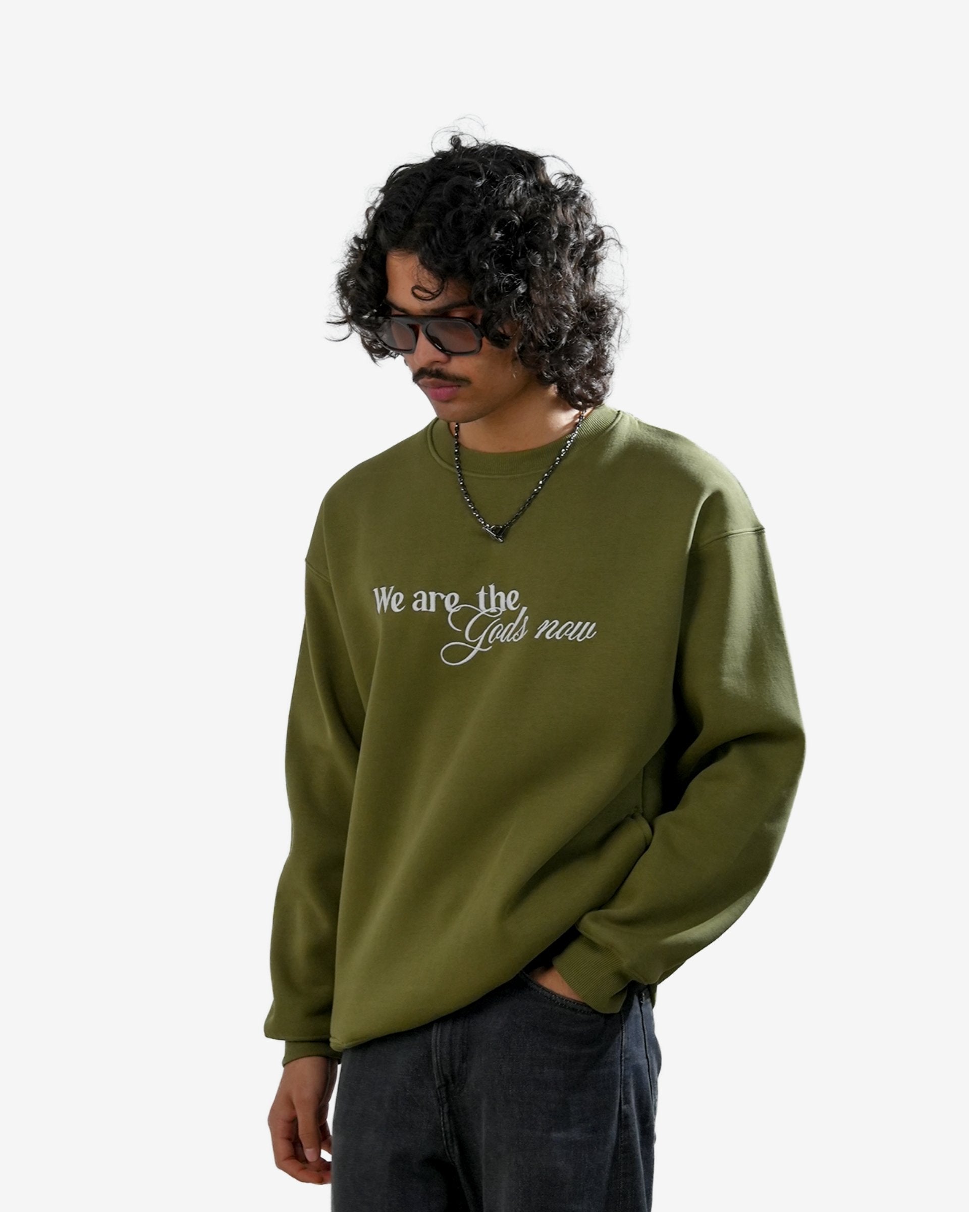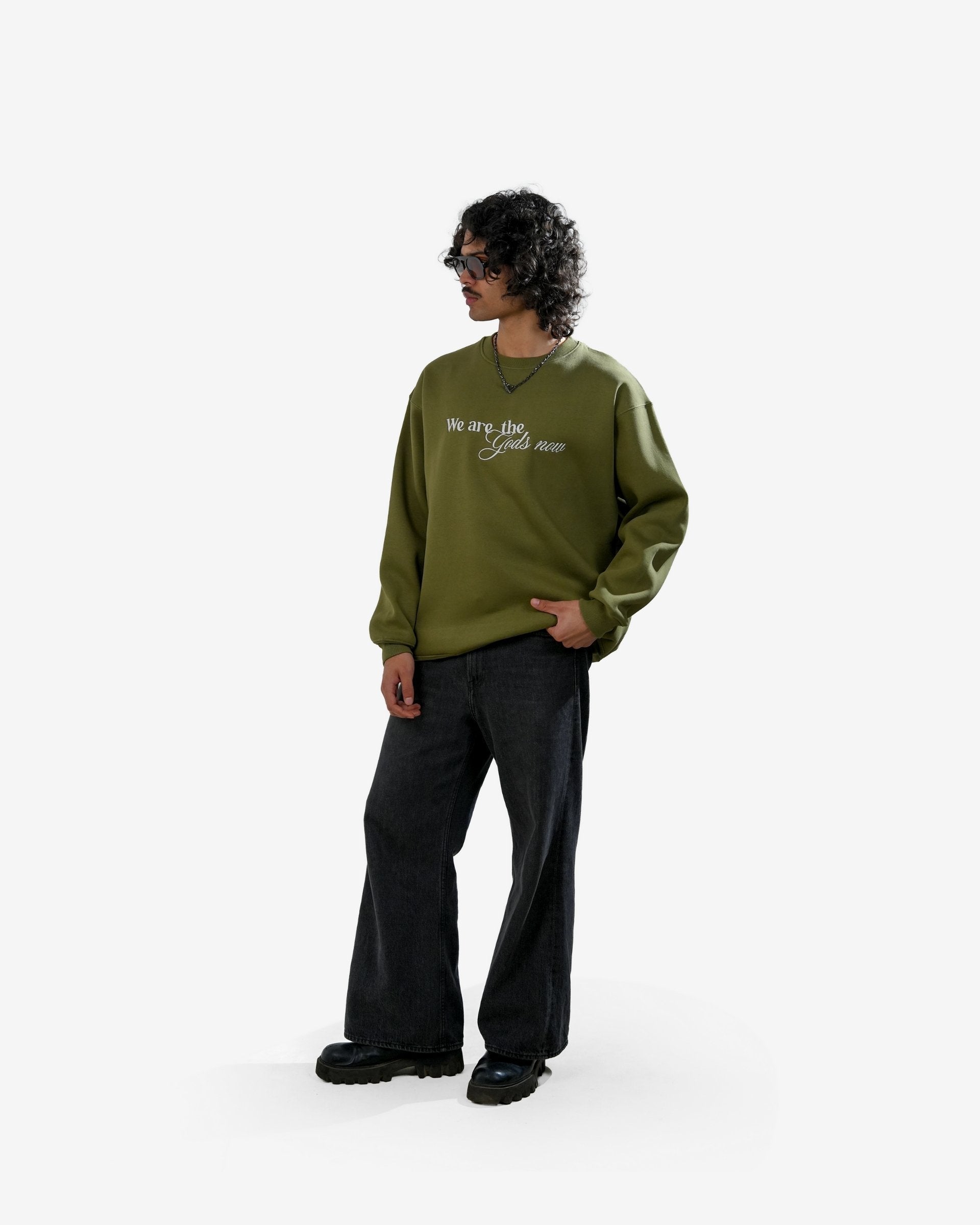 Diabolical - Olive Embroidered Oversized Sweatshirt