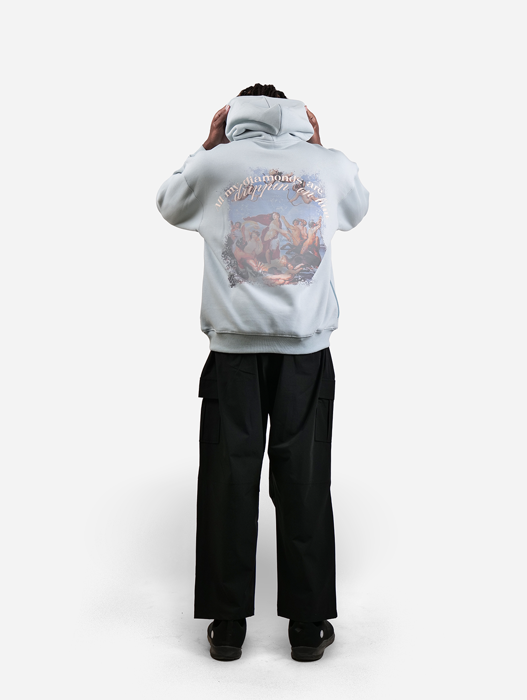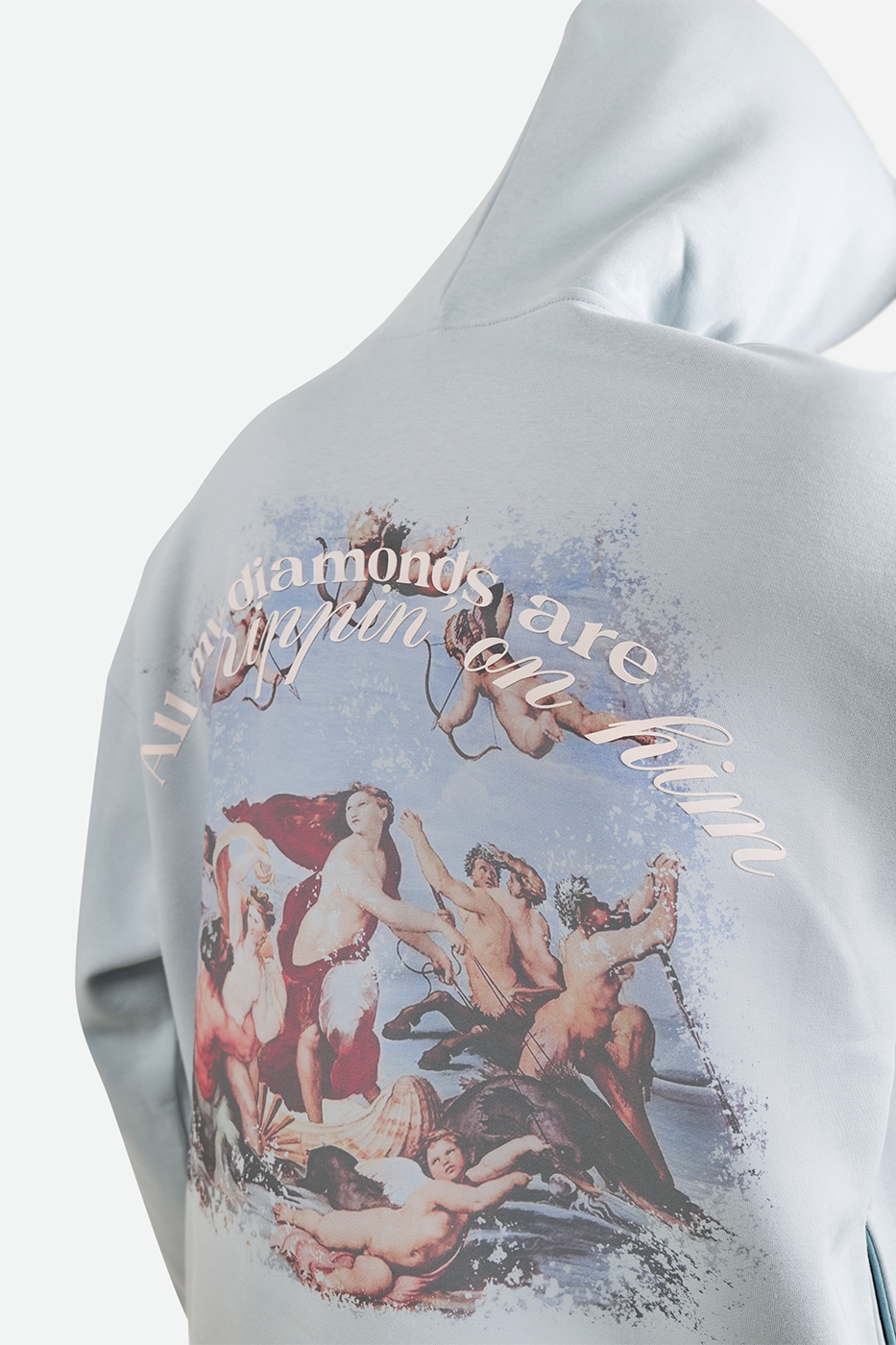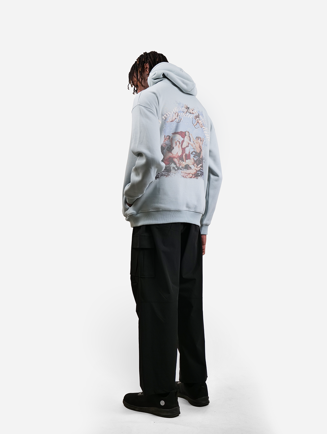 Introducing the Stone Blue colour Renaissance themed hoodie, Featuring an intricate DTG print inspired by the elegance of the Renaissance, this hoodie is a masterpiece in itself. Crafted for comfort, it offers a relaxed drop-shoulder fit, and a soft, durable fabric that drapes perfectly. This versatile piece pairs effortlessly with cargos, joggers, or denim, making it ideal for casual hangouts, artistic gatherings, or laid-back evenings.