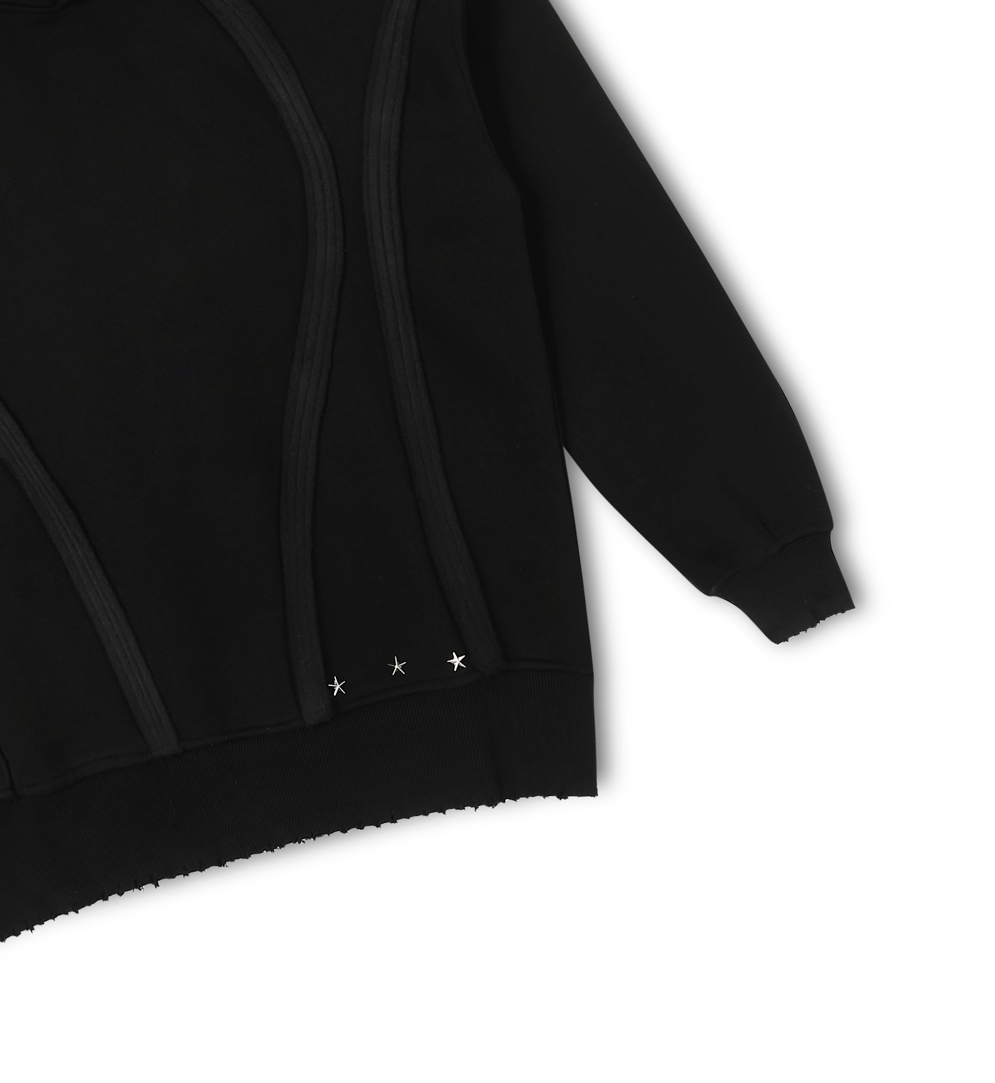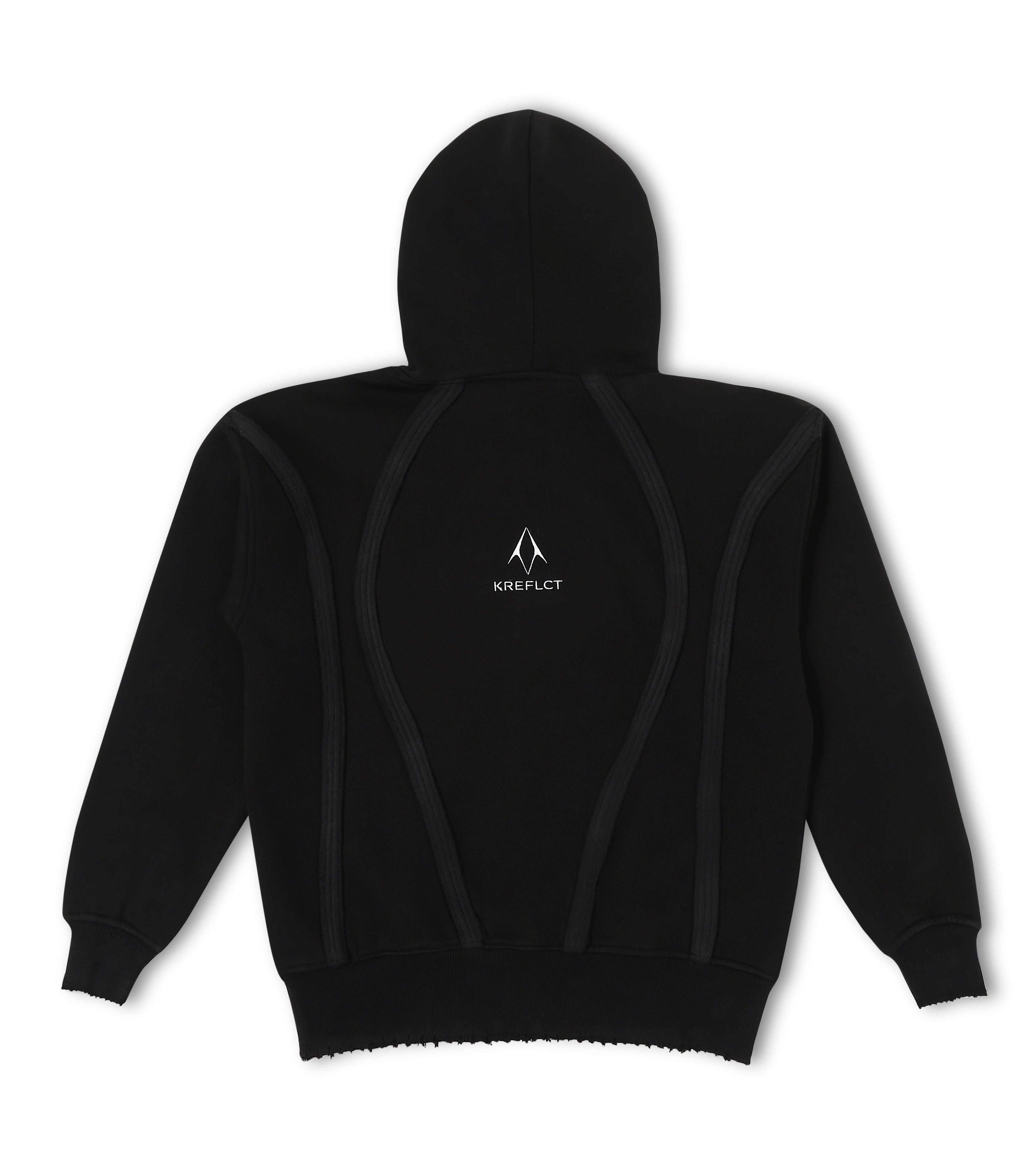 Kreflct’s Disrupt Hoodie delivers sharp detailing and clean structure in a confidently minimal way. Inside-out curved panels run along the body, giving the piece a sculpted, dimensional feel without being over the top. Star-shaped rivets at the hem add a subtle signature touch, while the rugged, raw-cut bottom brings in an easy, lived-in finish. Crafted from heavyweight cotton terry with a soft fleece interior, it keeps you warm and comfortable through the day. Pair it with cargos, denim, or your everyday essentials, this hoodie makes an impact without trying too hard.