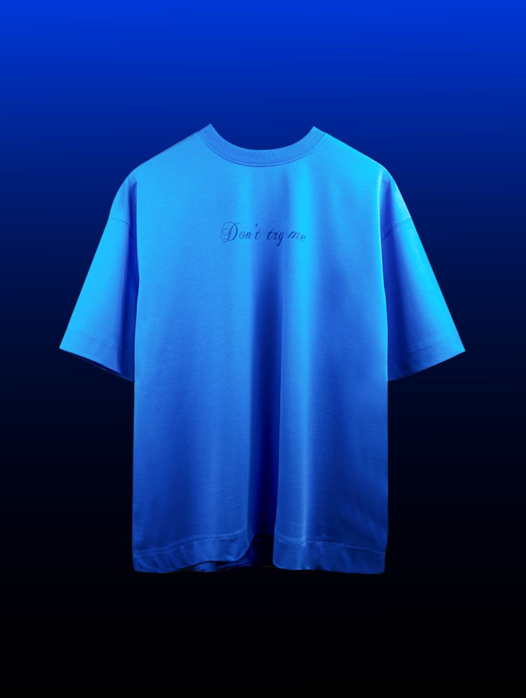 Don't Try Me! - Blue Graphic Drop Shoulder Unisex Oversized T-Shirt