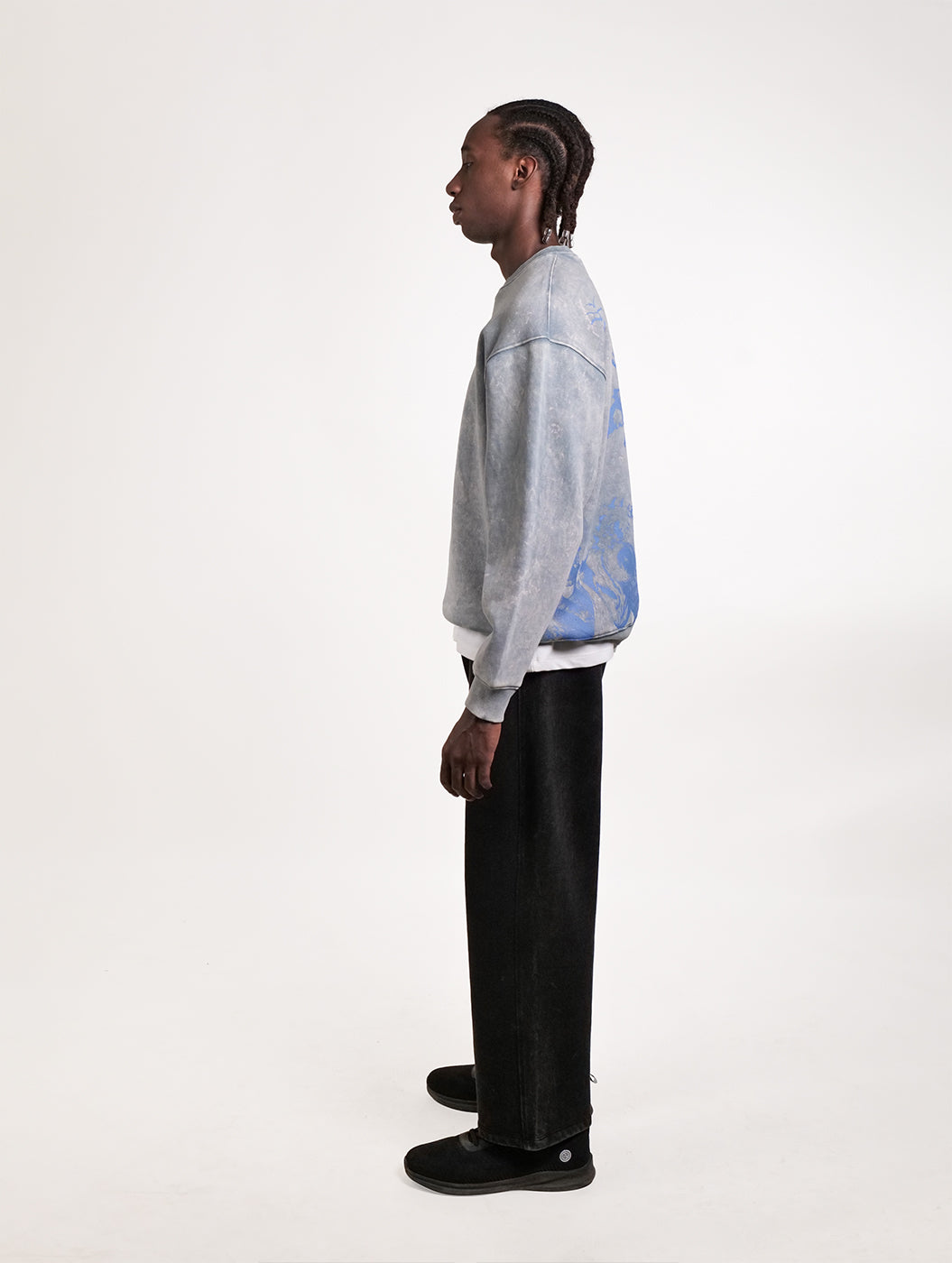 With a faded wash and a captivating tale of the angel of death on the back, this oversized sweatshirt is designed to make a statement. Perfect for clubbing or hanging out with friends, it pairs effortlessly with comfortable denim or trousers, offering a cozy fit and bold style.