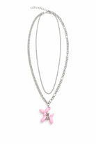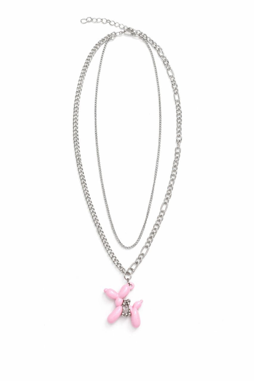 Double Chain Stack Balloon Dog Necklace Pink