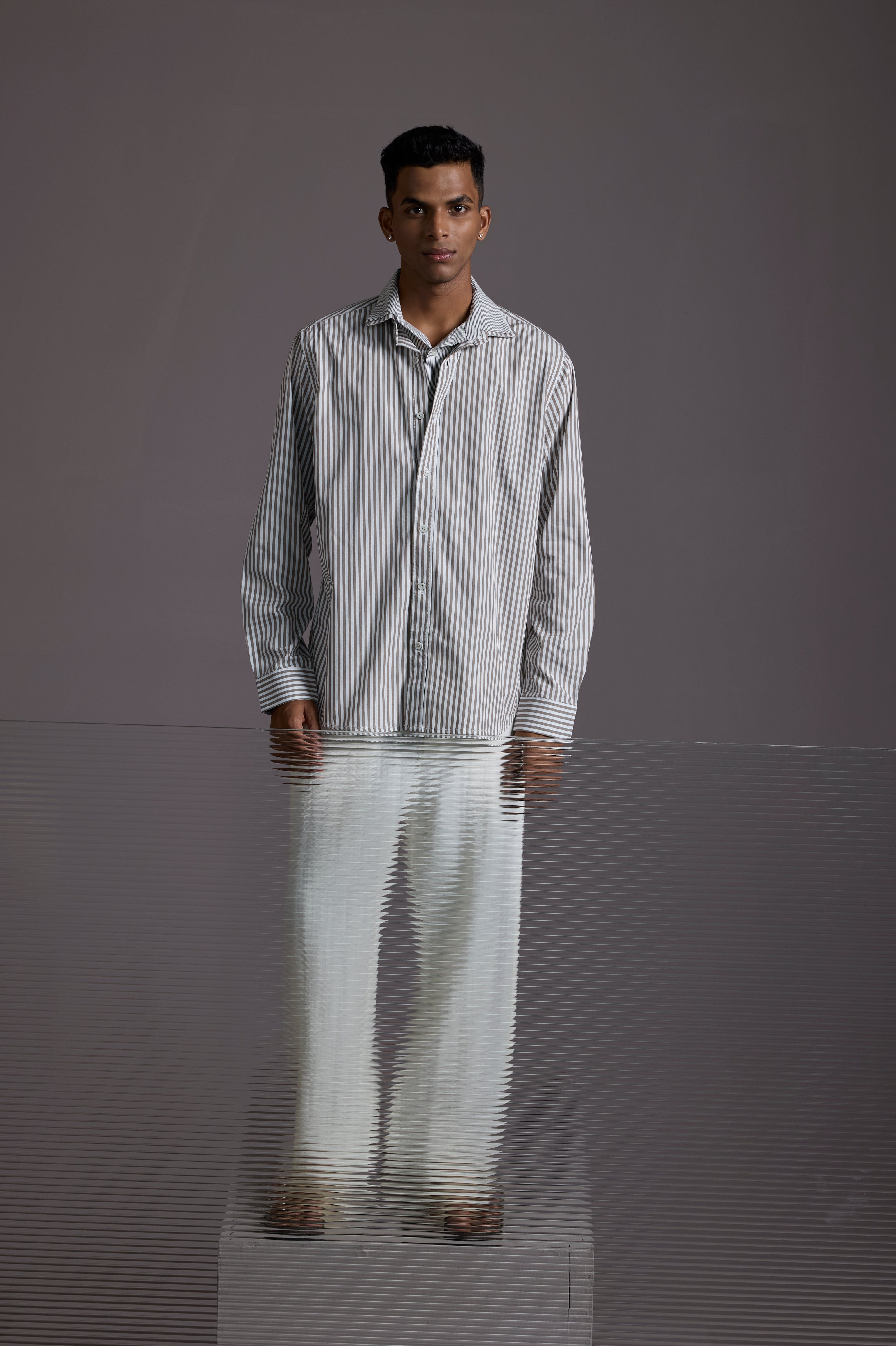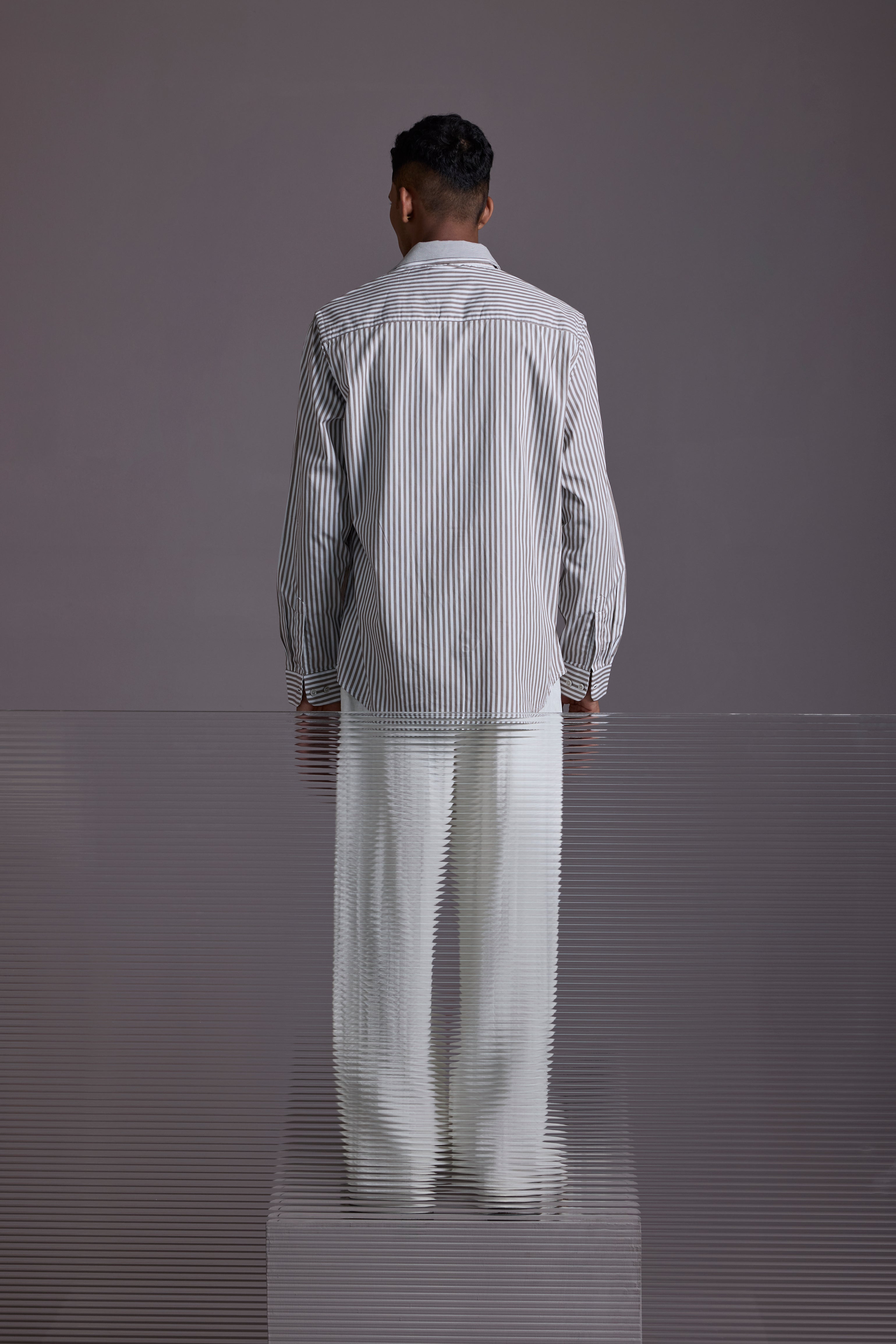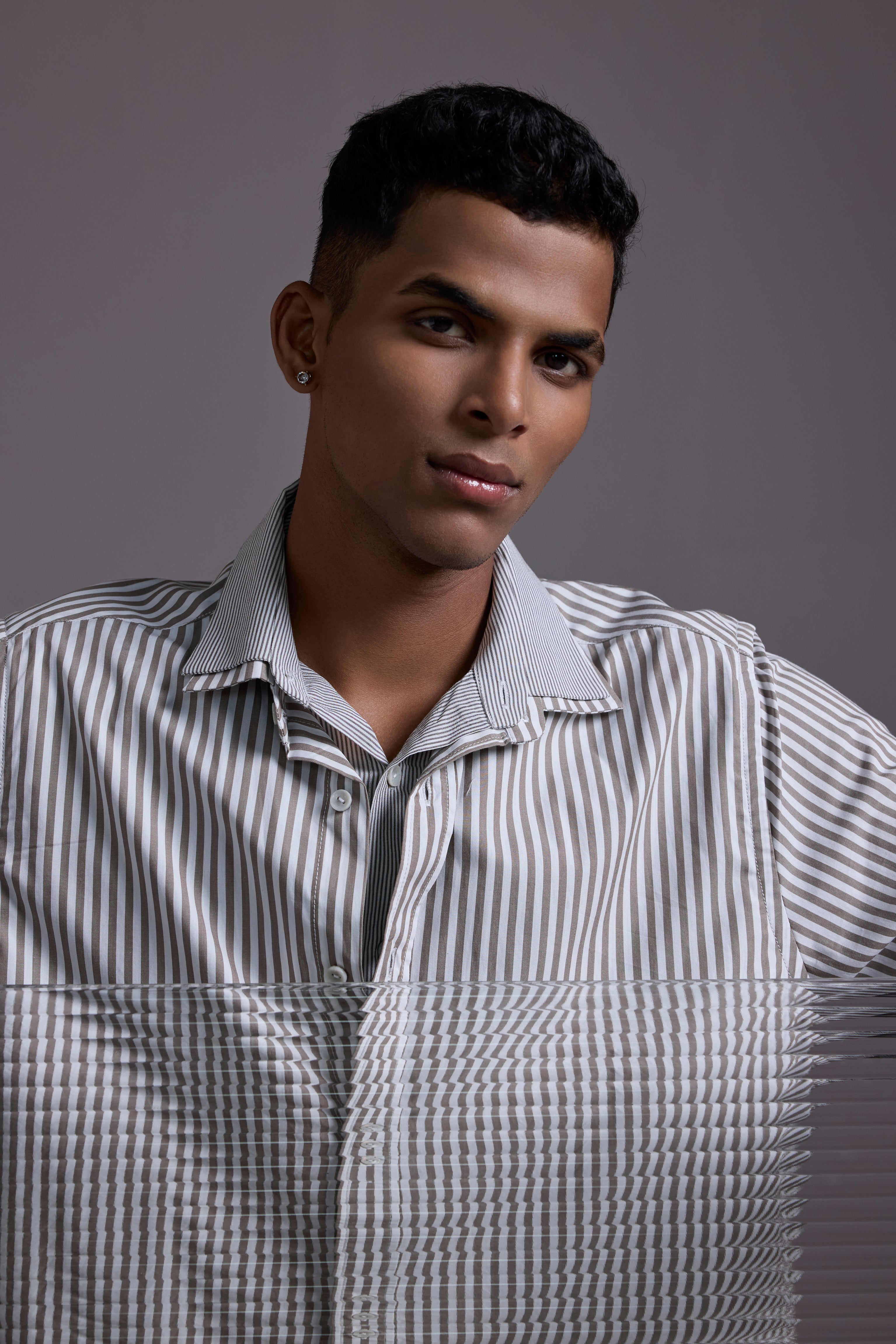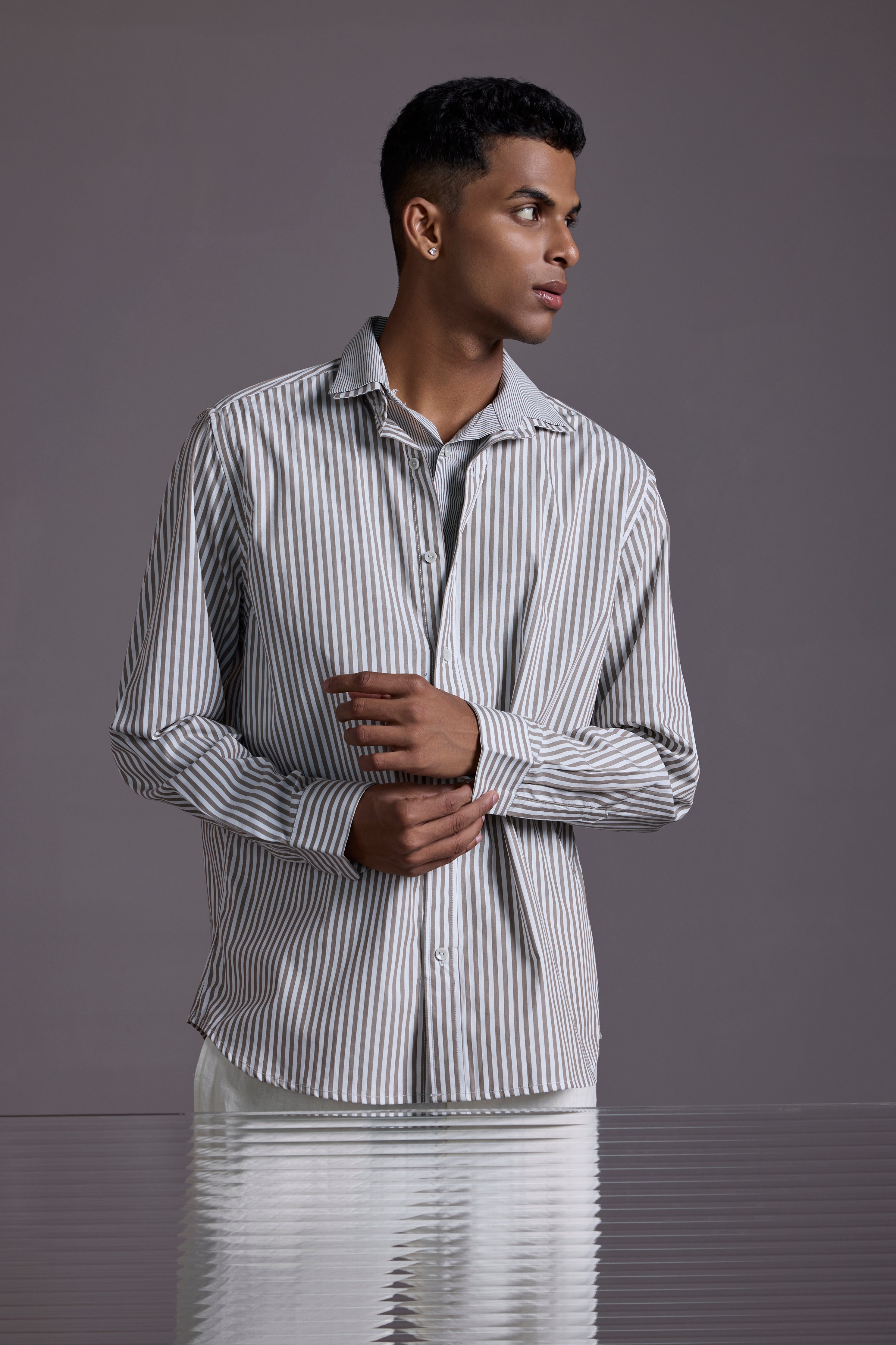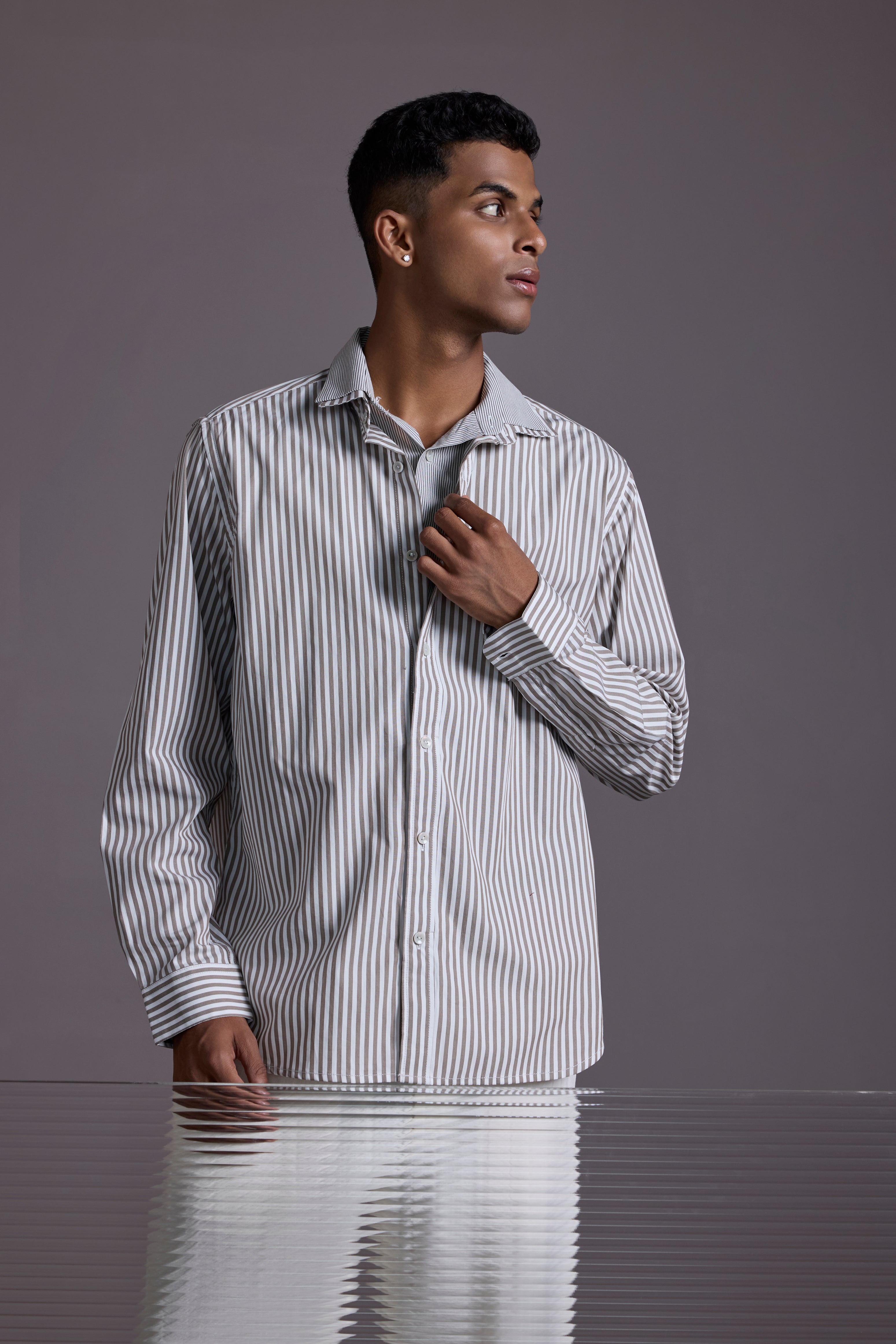 The Split Identity Shirt is a statement in subtle rebellion — crafted by combining two shirts into one unique layered piece. On the outside, it’s a crisp full-sleeve shirt with bold vertical stripes. On the inside, a stitched-in half shirt creates an intentional peek-through layer effect that plays with depth, symmetry, and style.