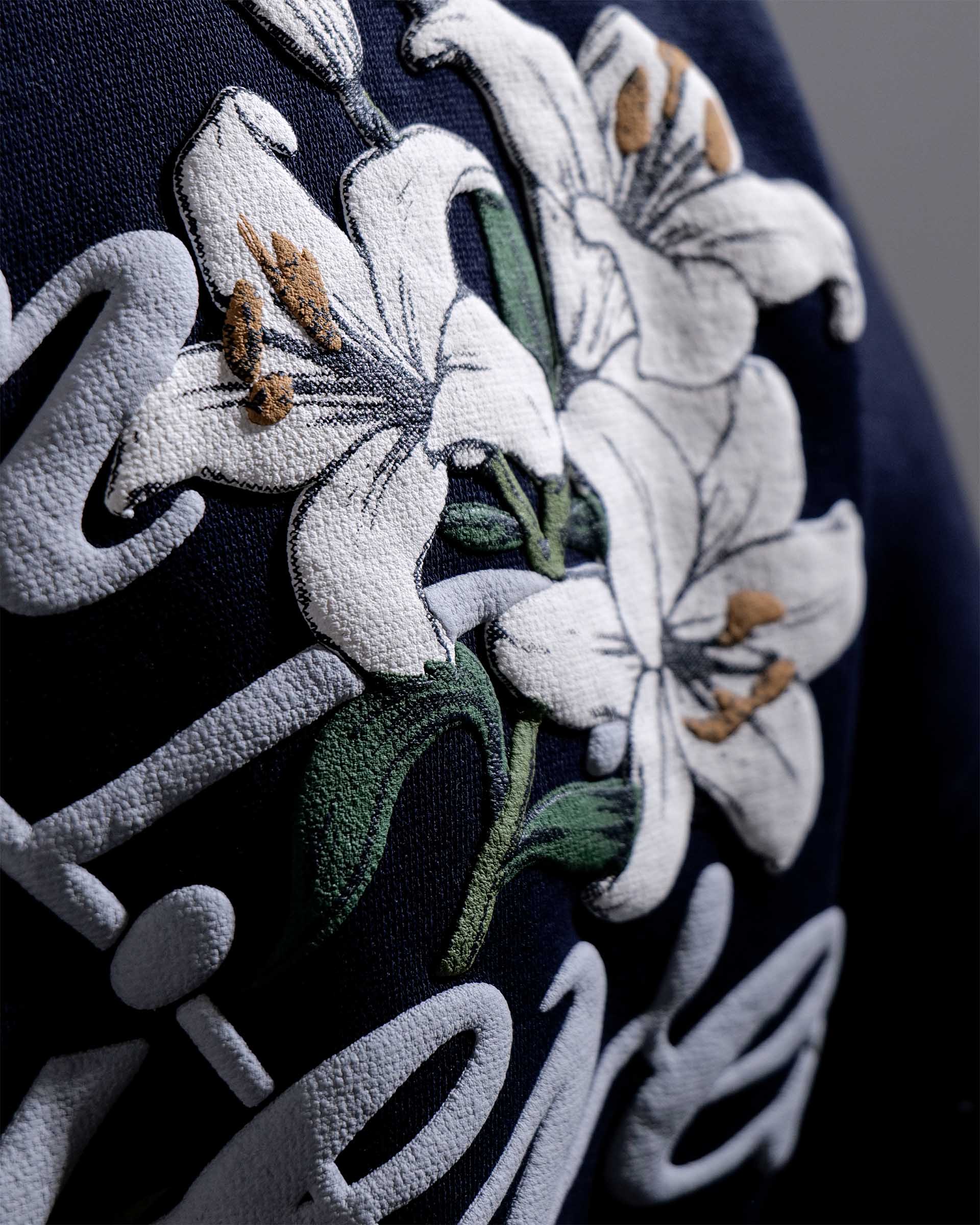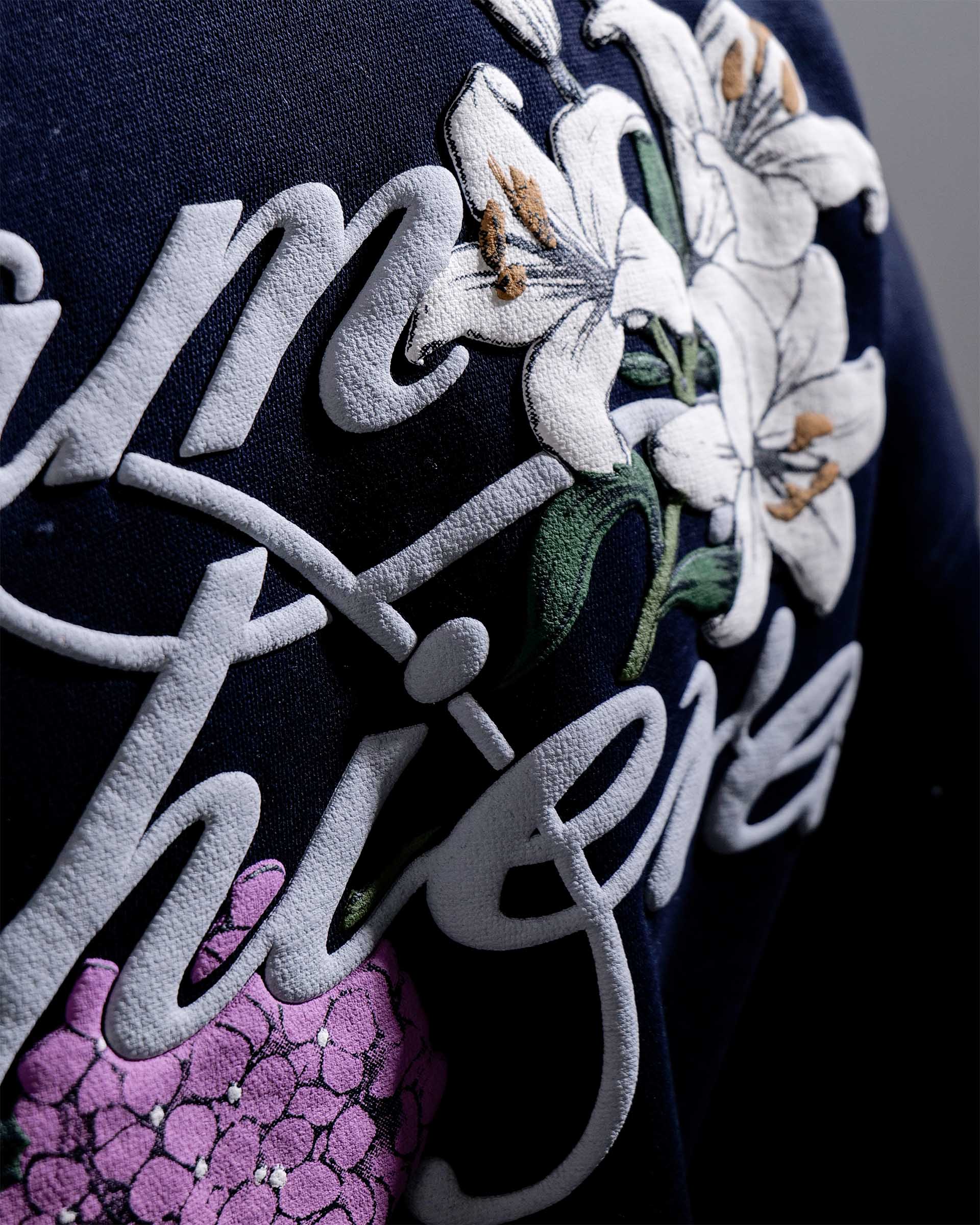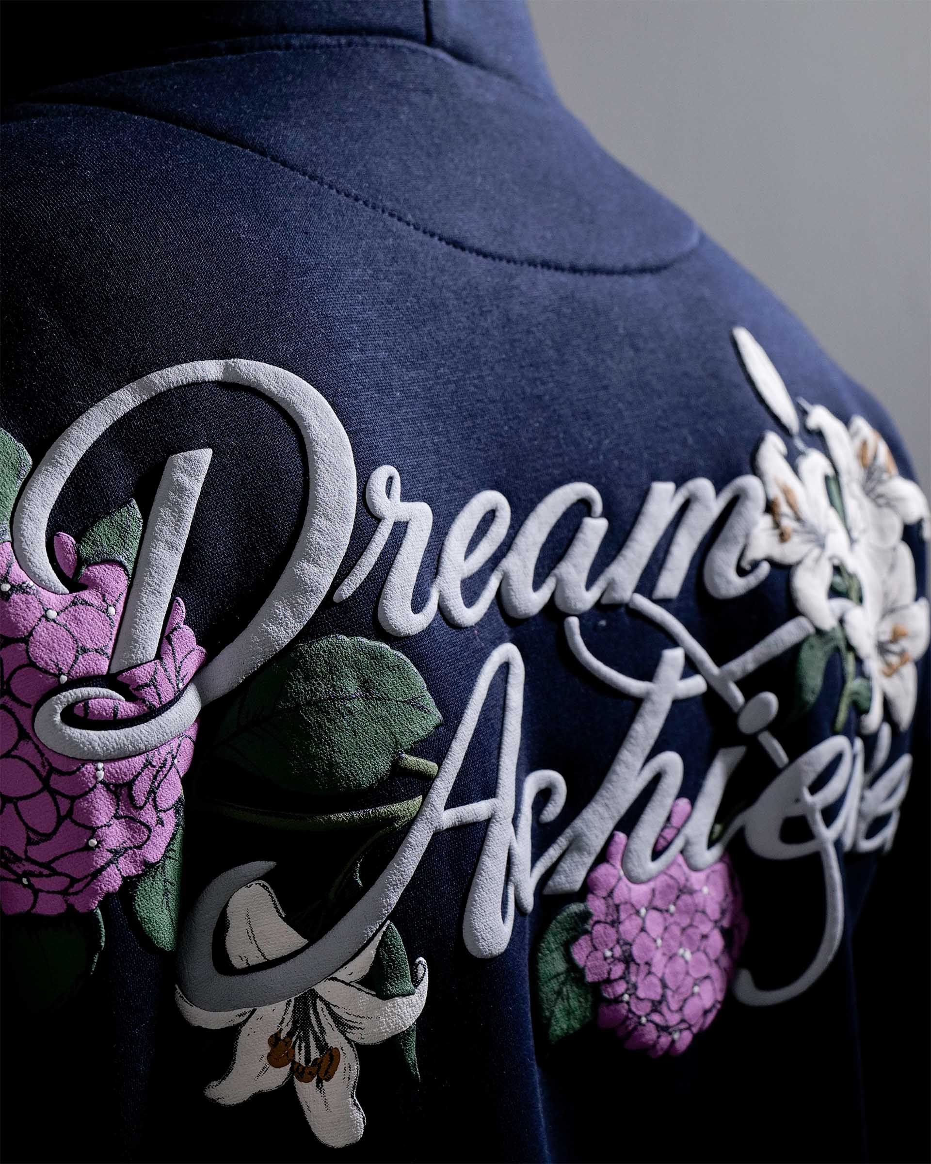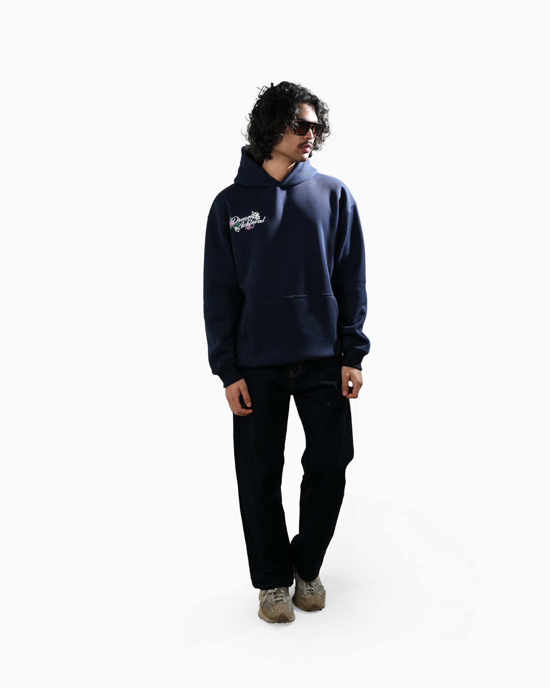 The Dream Achieved hoodie in navy is constructed from heavyweight 400 GSM three-thread cotton fleece, offering a structured yet comfortable feel. Designed with an oversized fit, it features detailed puff print artwork on both the front and back. A specialised screen-printing technique is used to achieve enhanced puff and depth, making the artwork stand out against the deep navy base. Finished with 2x2 ribbed hems on the sleeves and bottom for added durability and shape retention.