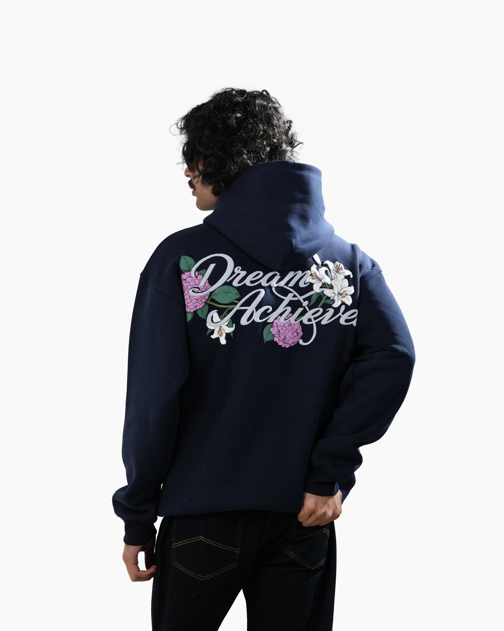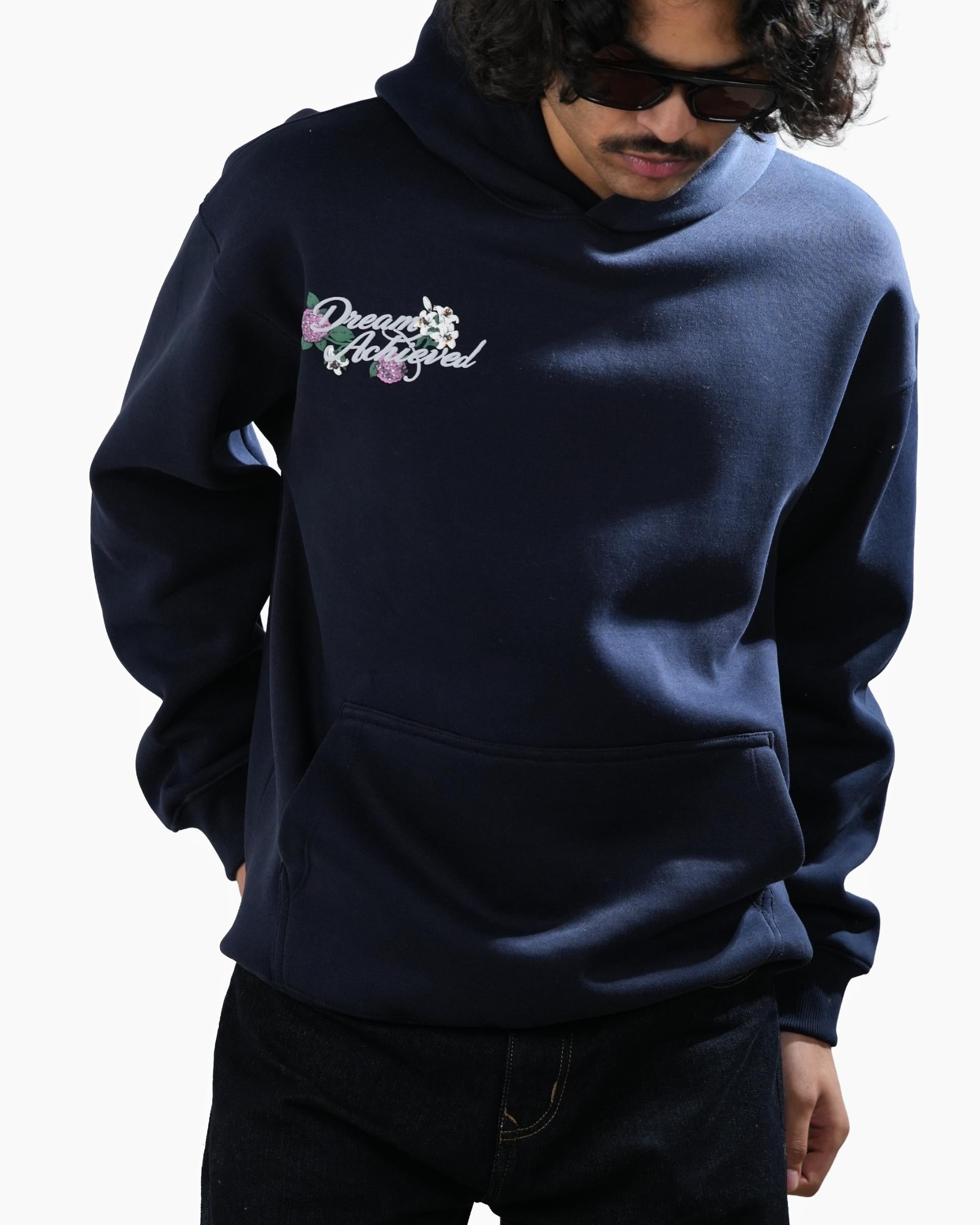 Dream Achieved - Navy Blue Oversized Printed Hoodie