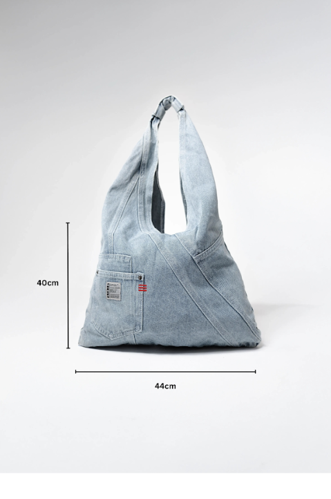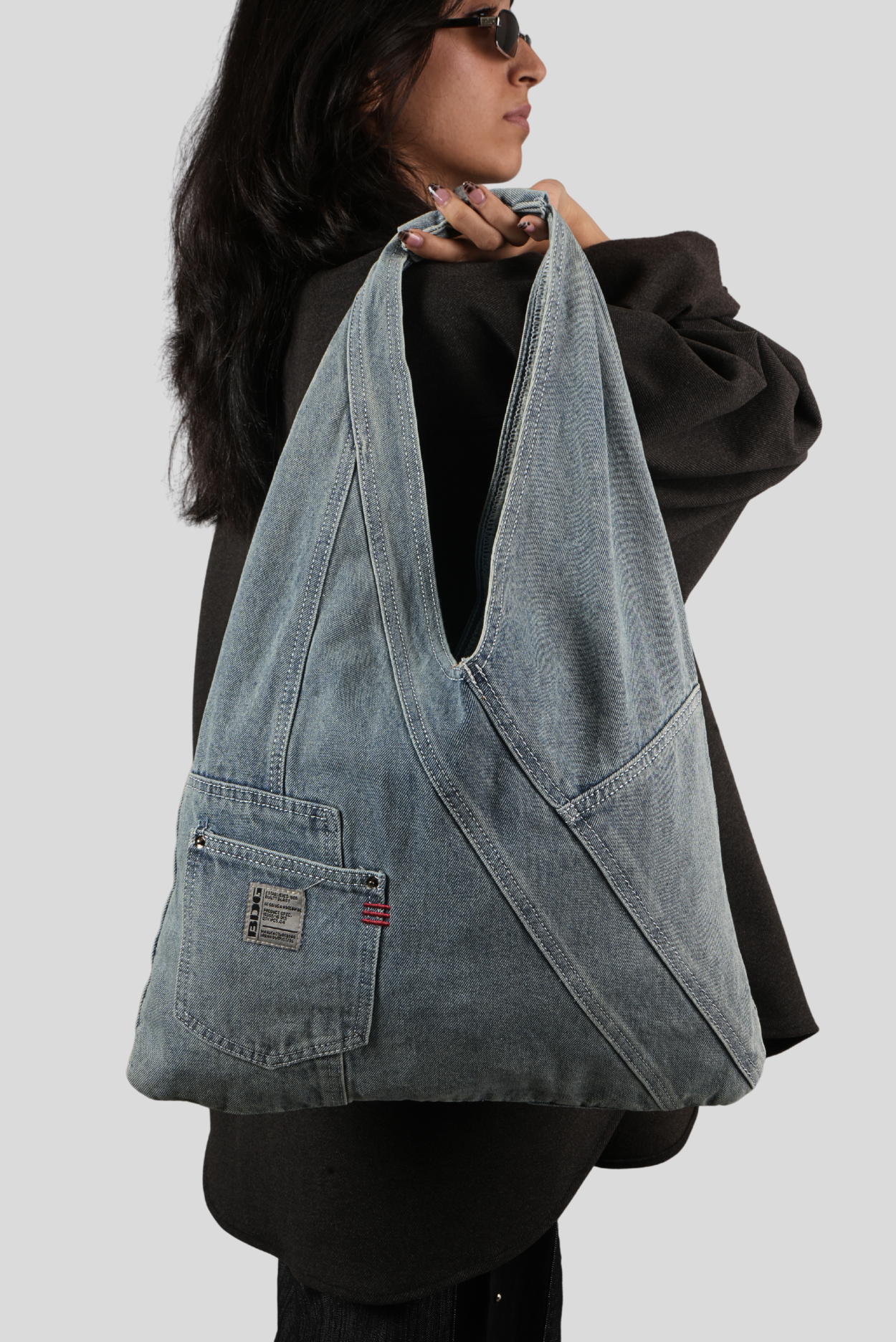 A reimagination of functional streetwear, the Driftcell Shoulder Bag is where utility crashes into raw design philosophy. Cut from washed denim, the asymmetric stitch lines and angled pocket seams amplify its subversive geometry. The slouchy silhouette molds naturally to your body while keeping an edge through visible cross-panels and signature red stitch tag. The front pocket is a nod to classic jeanswear, but flipped with industrial detailing.