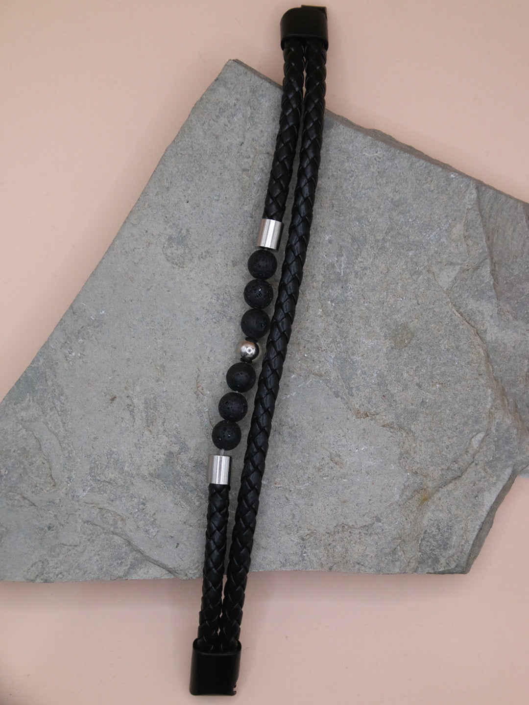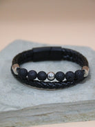 DUAL-LAYER CHARCOAL BEADS BRACELET FOR MEN