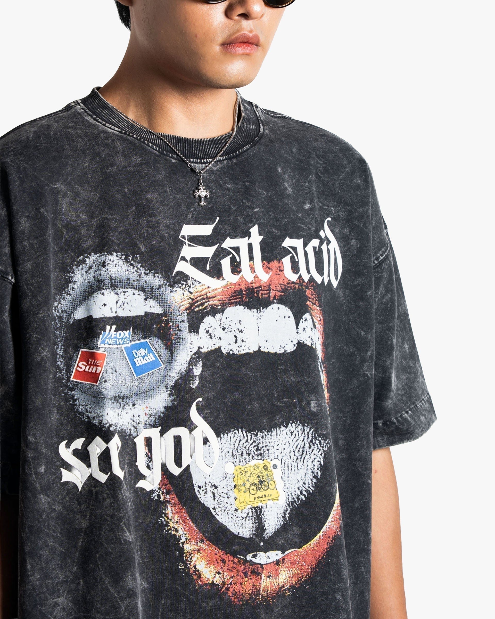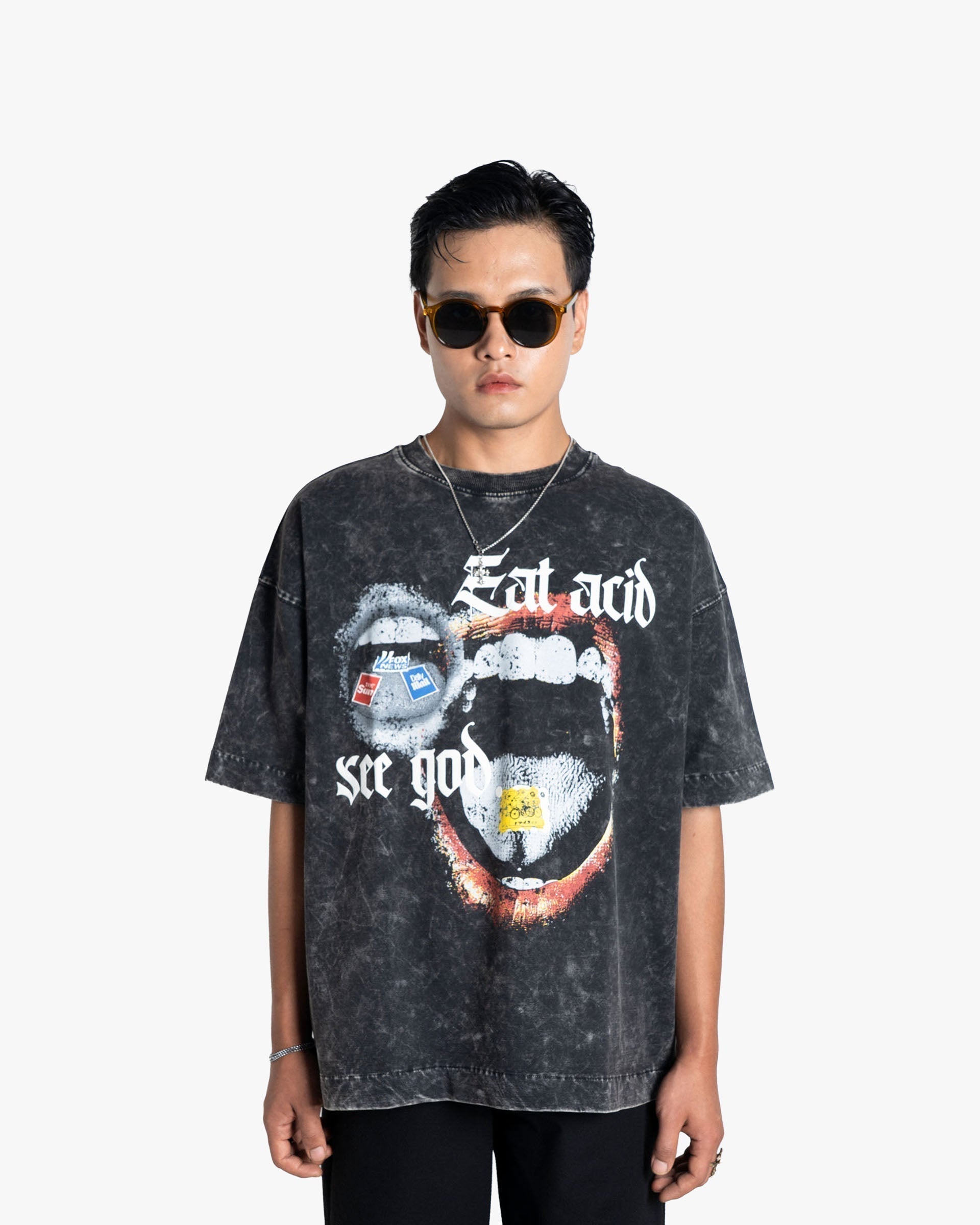 Eat Acid, See God – Oversized Stone Washed Graphic T-Shirt