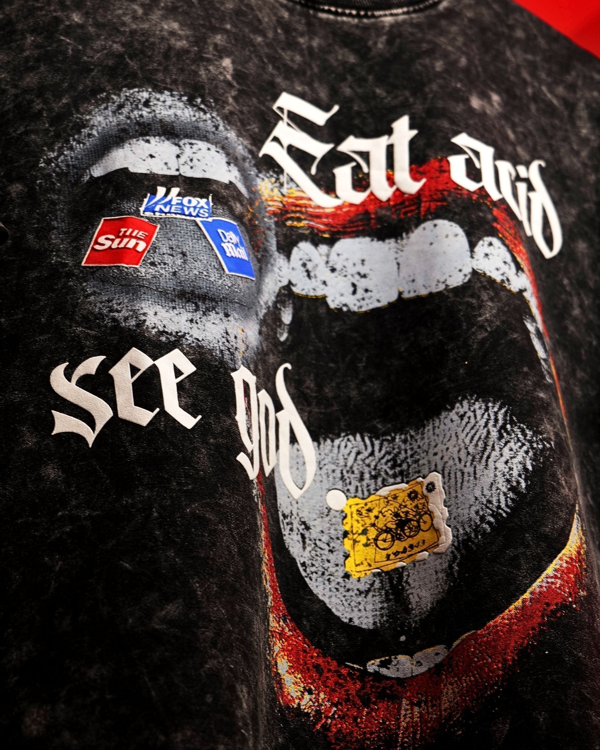 Design: Bold front graphic print with edgy streetwear vibe
