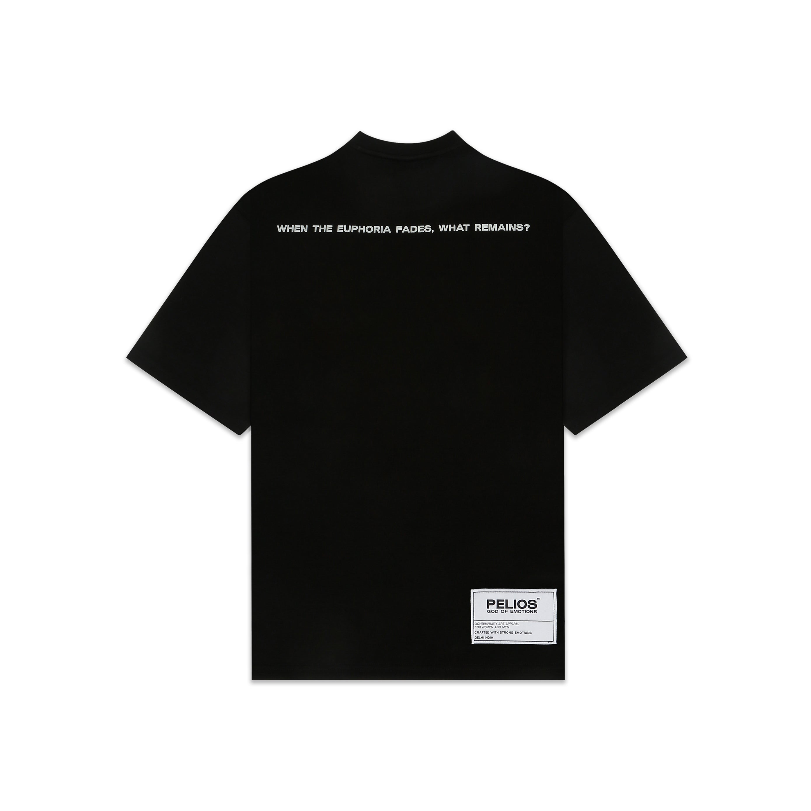 THE BACK SHOWCASES A BOLD 3D PRINT, ADDING DEPTH TO THE DESIGN, WHILE 'GOD OF EMOTIONS' BRANDING IS EMBROIDERED FOR AN ELEVATED FINISH. TRUE TO SIZE, THIS TEE OFFERS A RIGID, DURABLE STRUCTURE THAT CAN BE STYLED AS BOTH INNER WEAR AND OUTERWEAR / A TIMELESS ESSENTIAL.