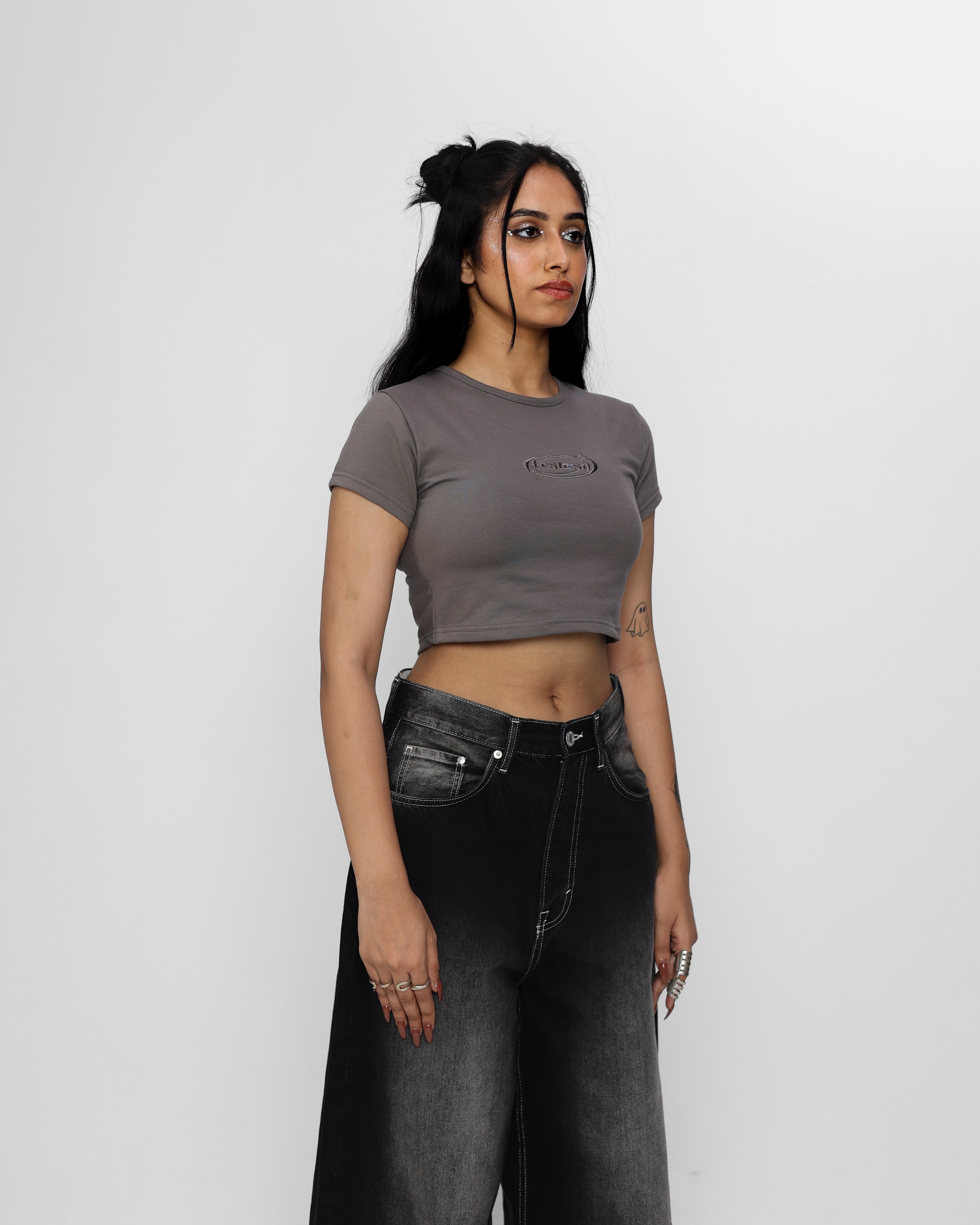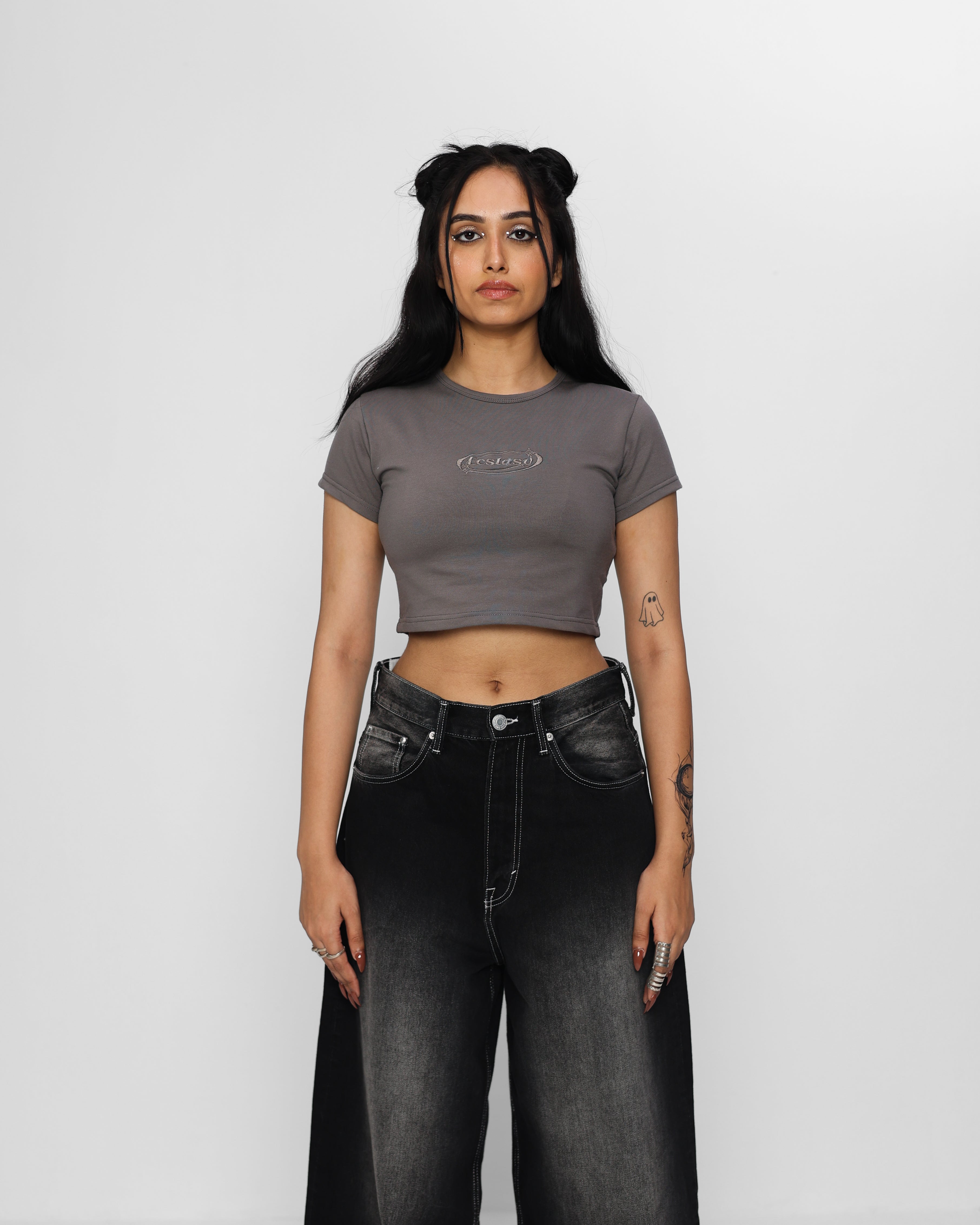 ECSTASY WOMEN BABY TEE (CHARCOAL GREY)
