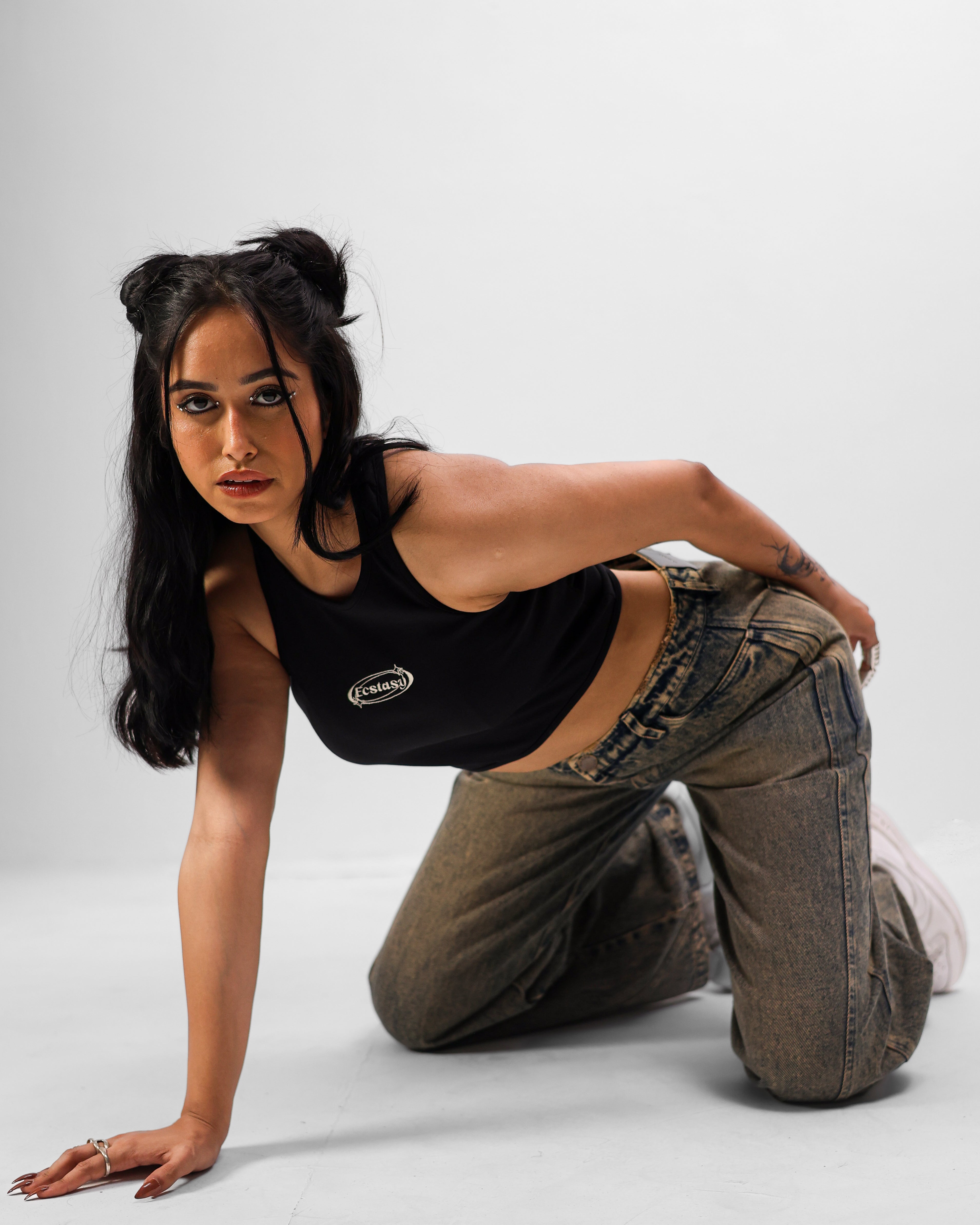 A HEAVYWEIGHT, CROPPED-FIT TANK DESIGNED FOR A STRUCTURED YET EFFORTLESS LOOK. CRAFTED FROM 300 GSM INTERLOCK HEAVYWEIGHT COTTON, IT OFFERS A STURDY, RIGID DRAPE WHILE ENSURING COMFORT AND DURABILITY.
