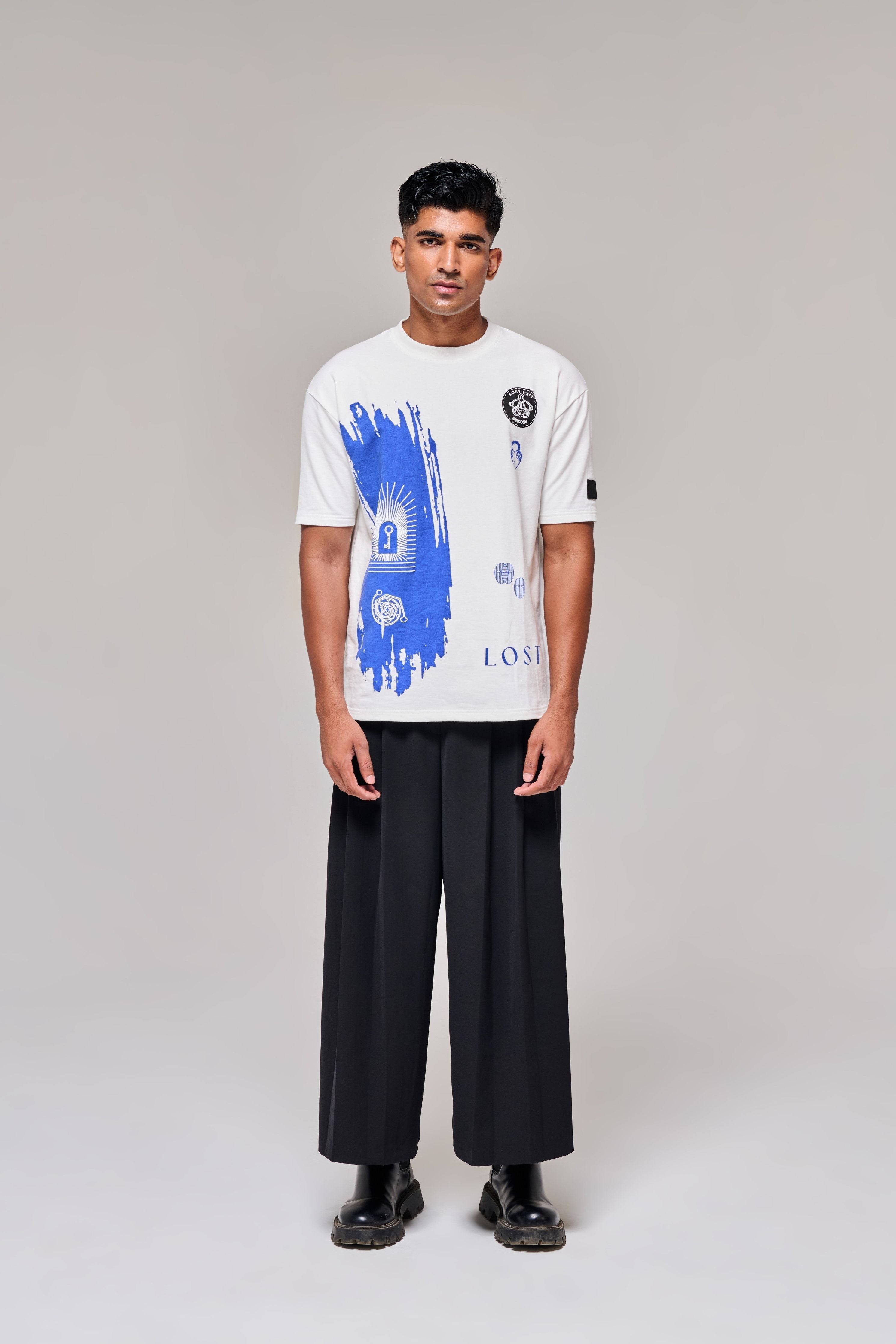 This oversized t-shirt is inspired by the signature maze patterns of Mason Lindroth. It effortlessly combines creativity and comfort, complete with an embossed leather patch. The fabric is 220 GSM, made of 100% cotton terry, and the fit is oversized. The design also includes a unique embossed leather patch.