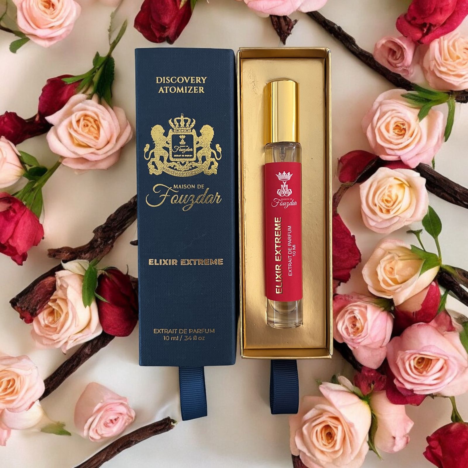 Every bottle of Elixir Extreme is a testament to Maison de Fouzdar's commitment to excellence and artistry. Encased in a sleek, modern flacon, it reflects the sophistication and timeless appeal of our house. For those who seek a fragrance that transcends the ordinary and celebrates the extraordinary, Elixir Extreme is the ultimate expression of olfactory luxury.