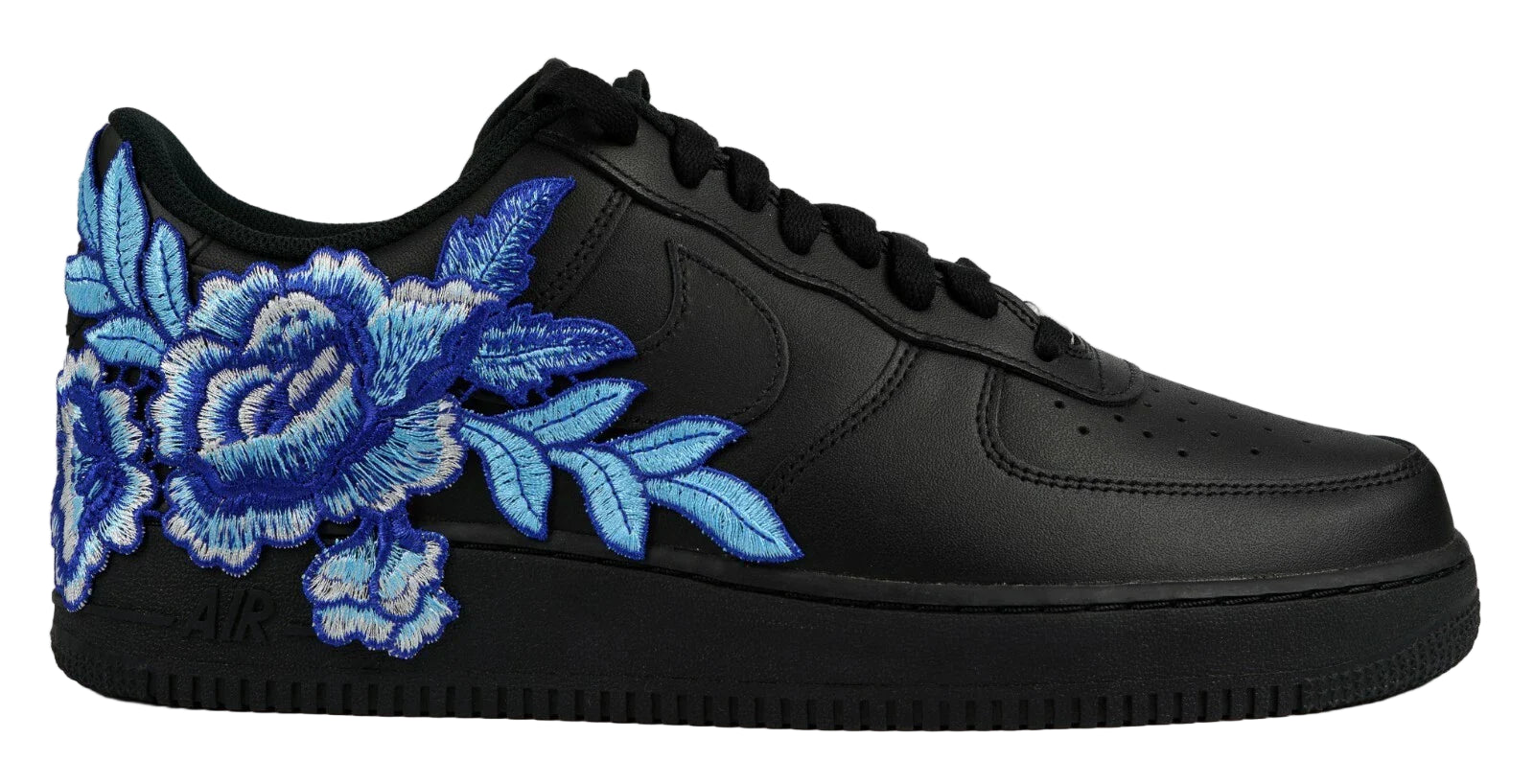 This custom features a bold embroidered floral pattern, hand-worked into the upper of the Air Force 1