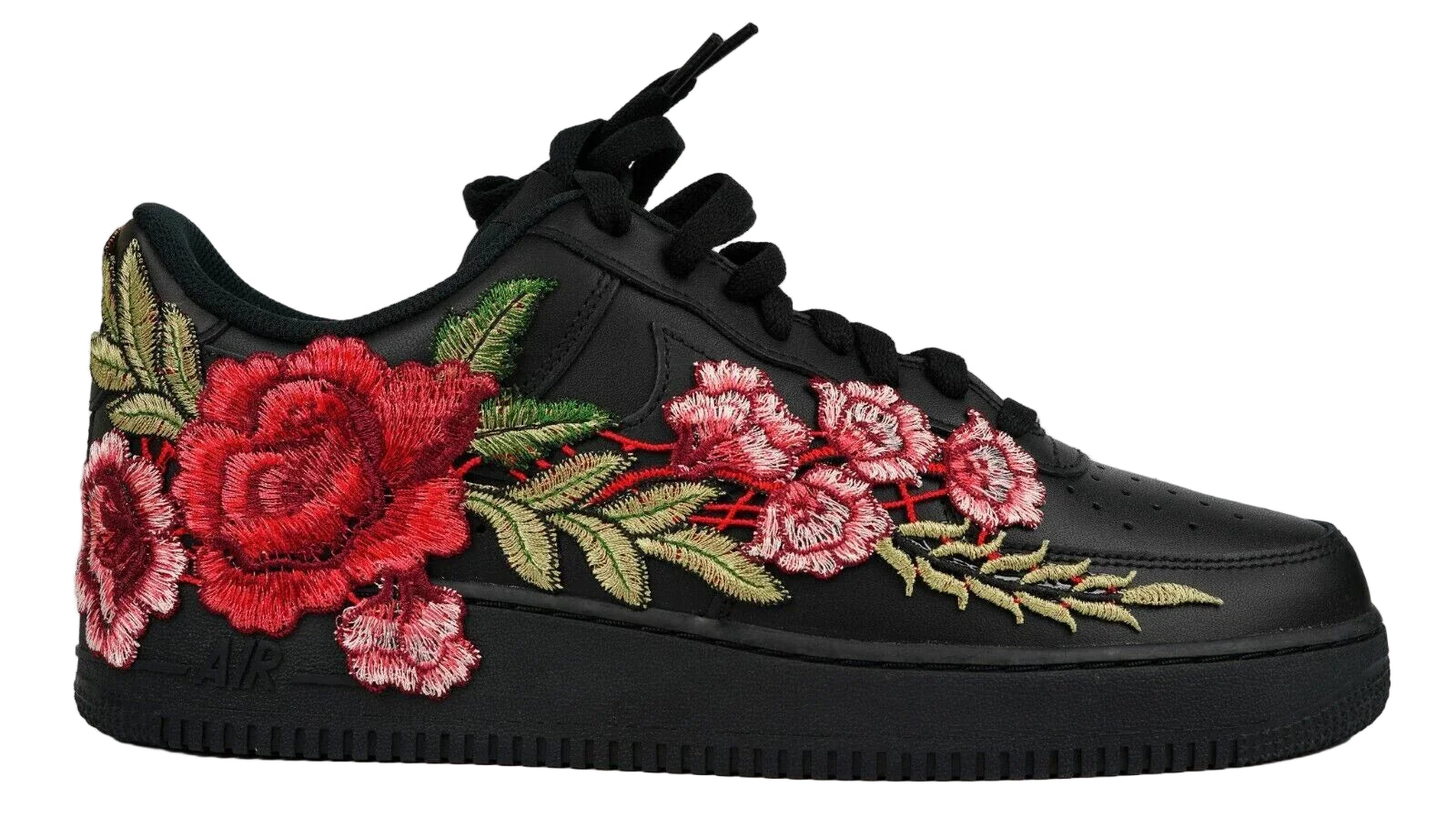 This custom features a bold embroidered floral pattern, hand-worked into the upper of the Air Force 1