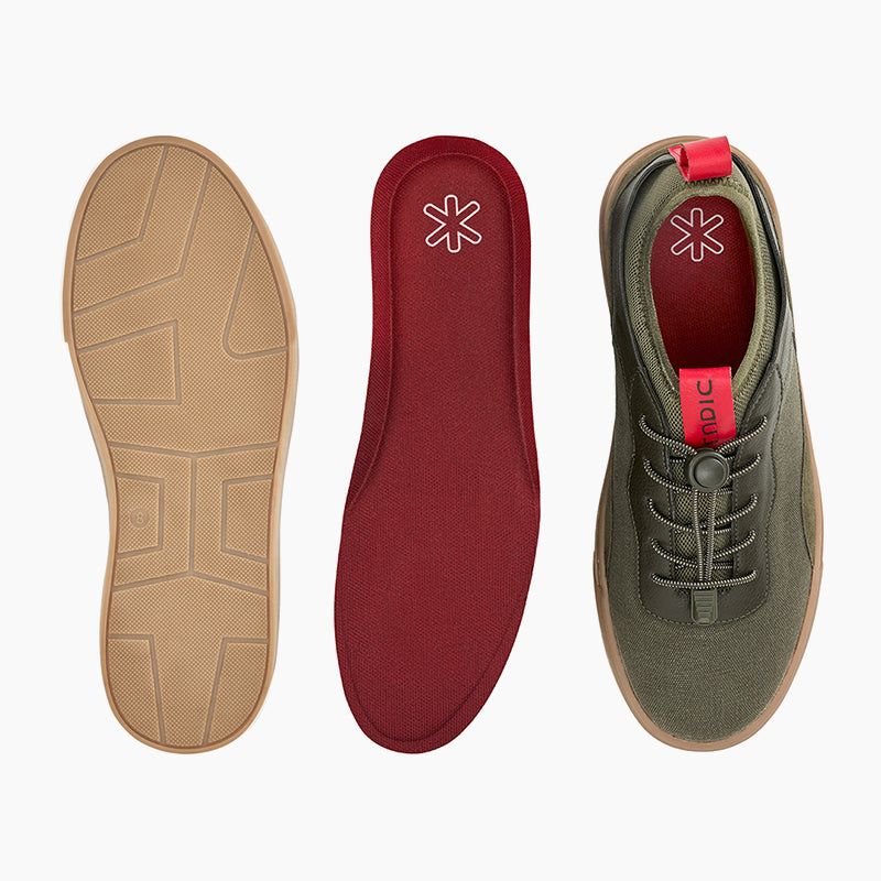 The Enhanced Canvas Pro is about convenience. This sneaker features a sock-like upper that offers a snug fit and no-tie laces for easy on and off. If you prefer traditional laces, we've got you covered with an extra pair included. The canvas fabric on this footwear has been specially developed by us. With suede and leather overlays, the Enhanced Canvas Pro stands out. It comes in three colours, each with a gum sole and a red detail for a pop of colour. Whether you're on the go or just taking it easy, these footwear move with you and keep you comfortable.