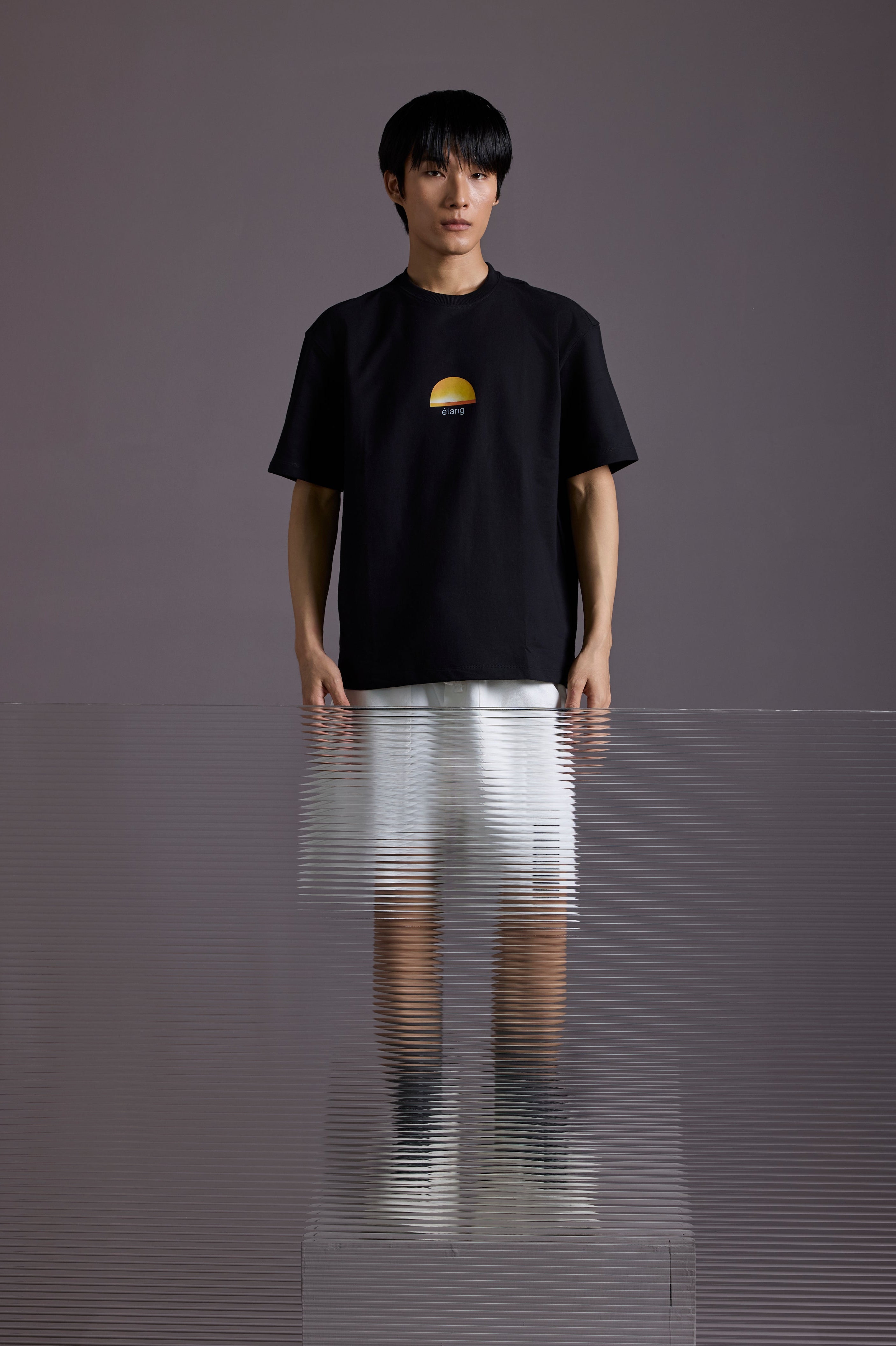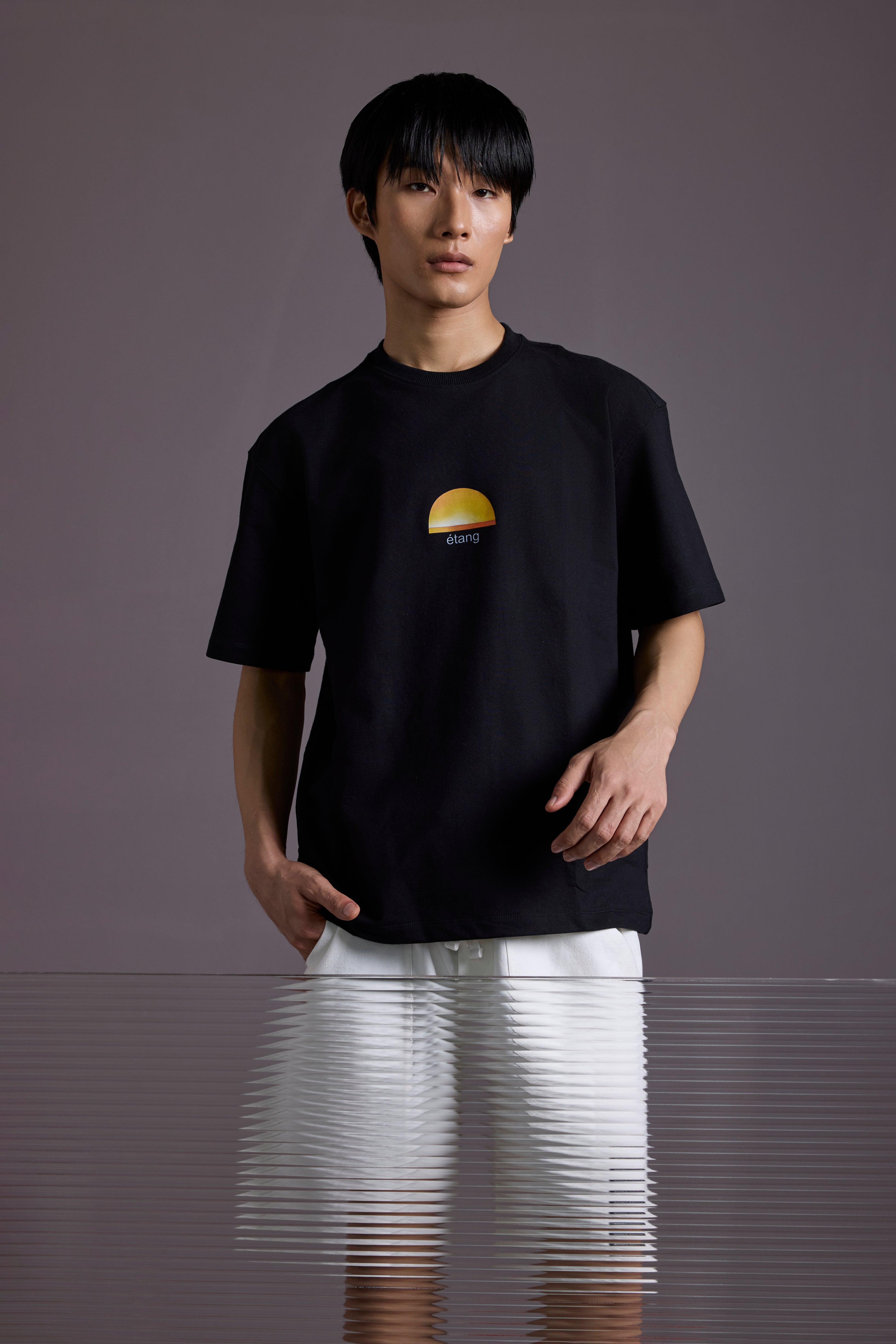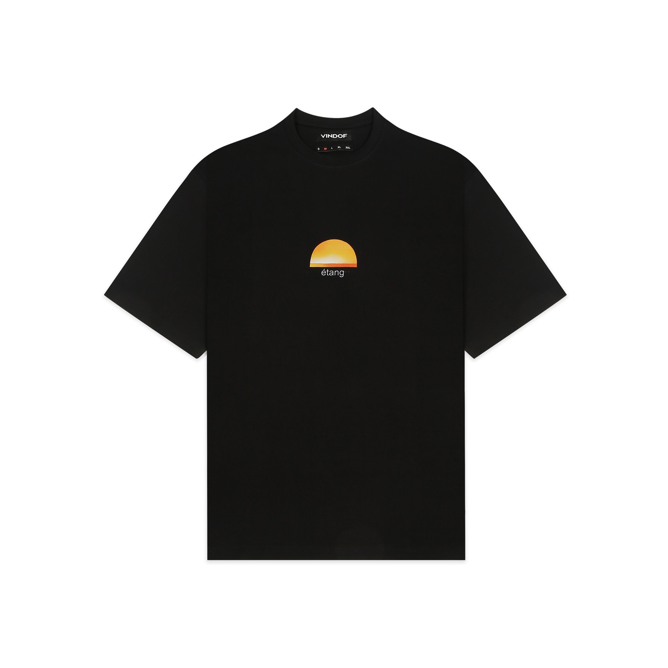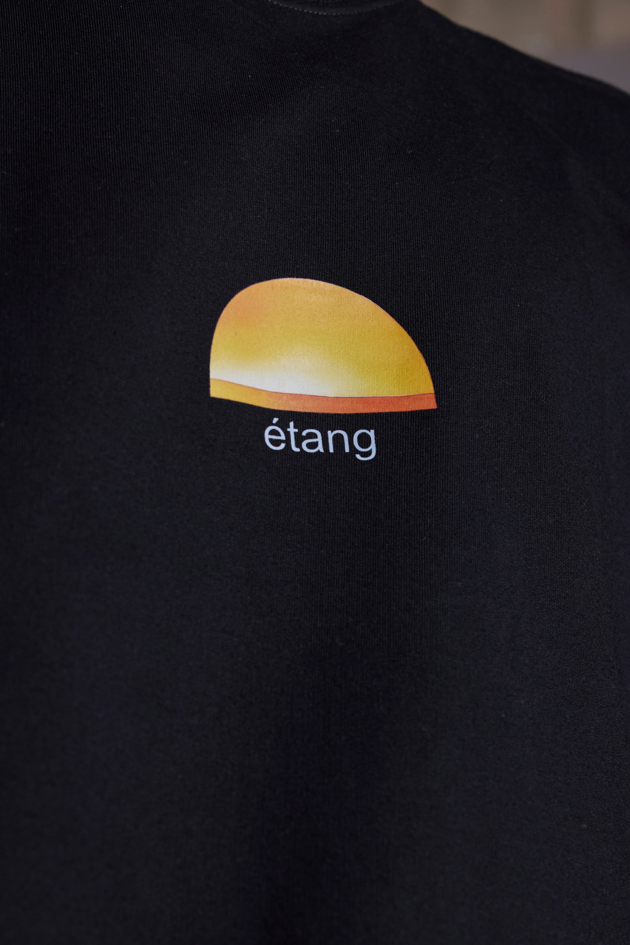 The Étang Tee is a quiet tribute to nature’s calm, featuring a minimalist sunset graphic with the word “étang” (French for “pond”) on the chest.