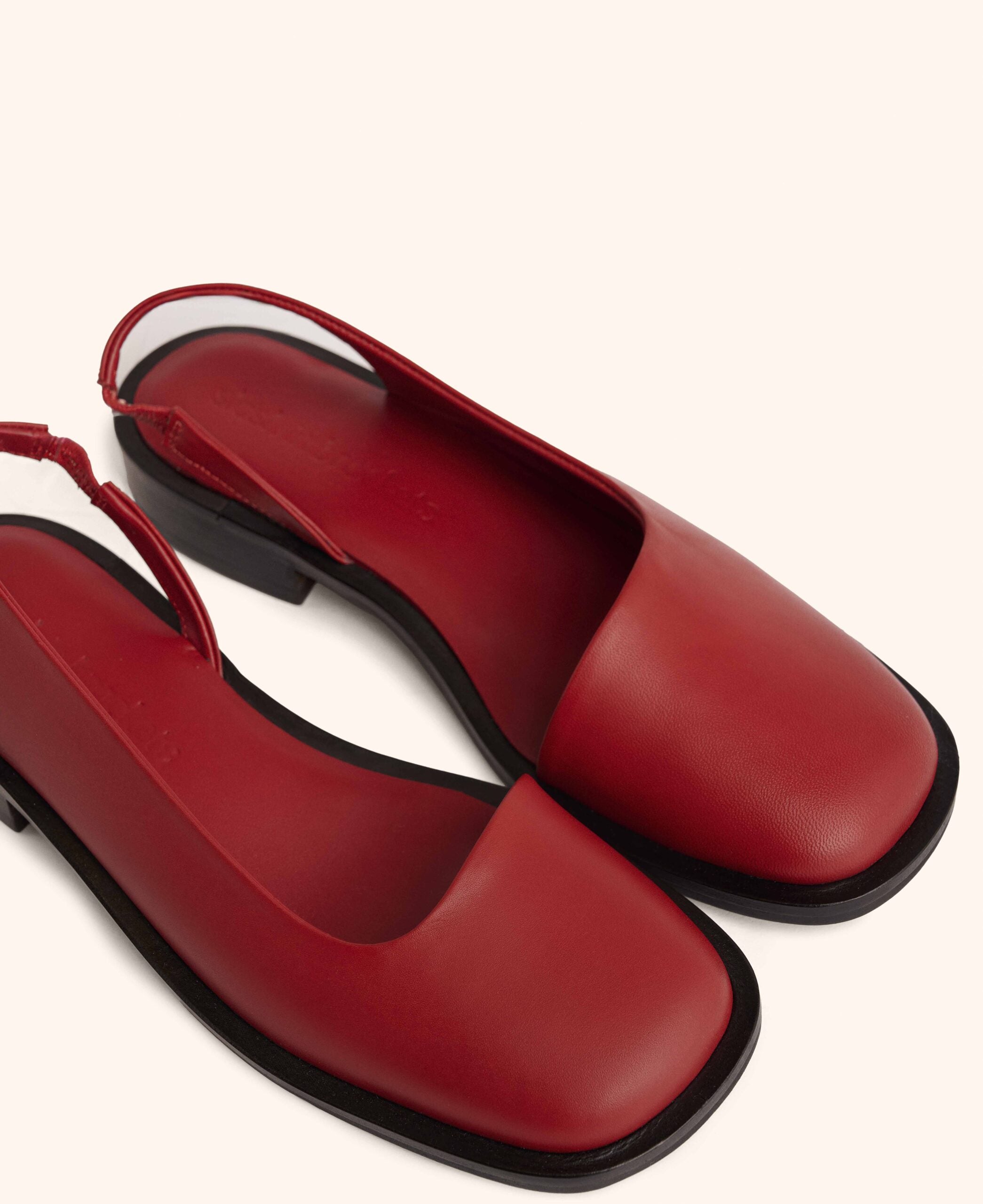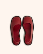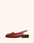 A squared-toe slingback mule with a continuous topline that forms the brand’s namesake slash, finished with an all-round plain welt and elastic detailing on the backstrap. Set on a 1.25-inch block heel with a high-density natural rubber sole.