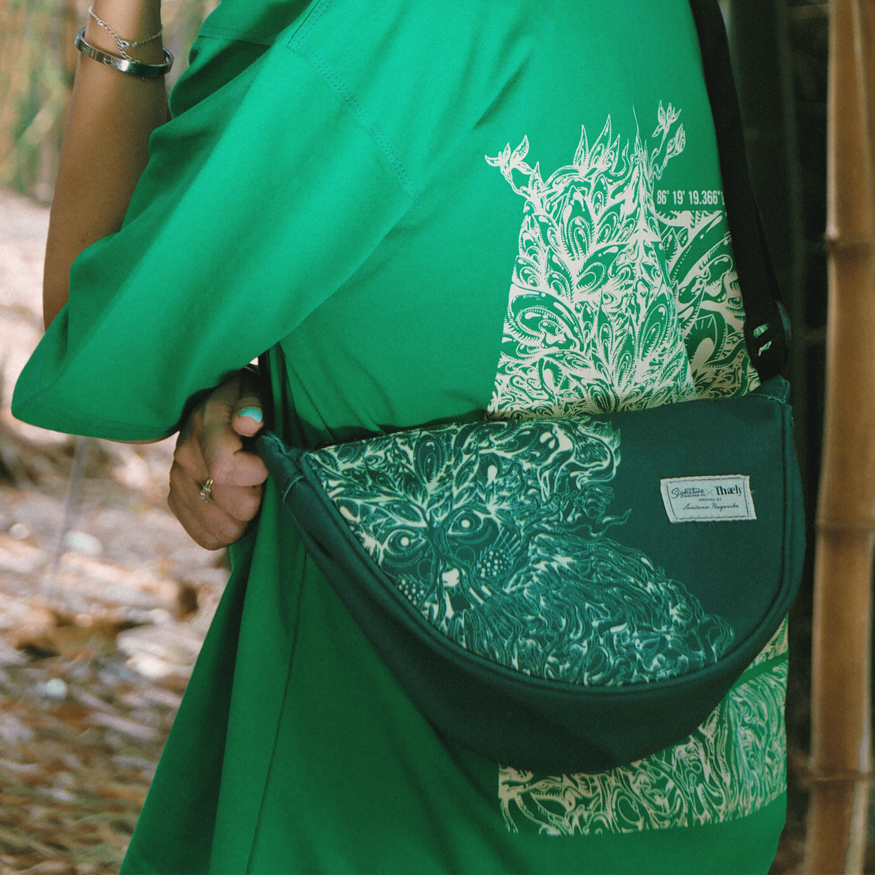 Made from recycled plastic bottles, this fanny pack is lightweight, durable, and easy to carry wherever you go. It features Santanu Hazarika’s signature mangrove artwork, a visual tribute to biodiversity and cultural heritage.