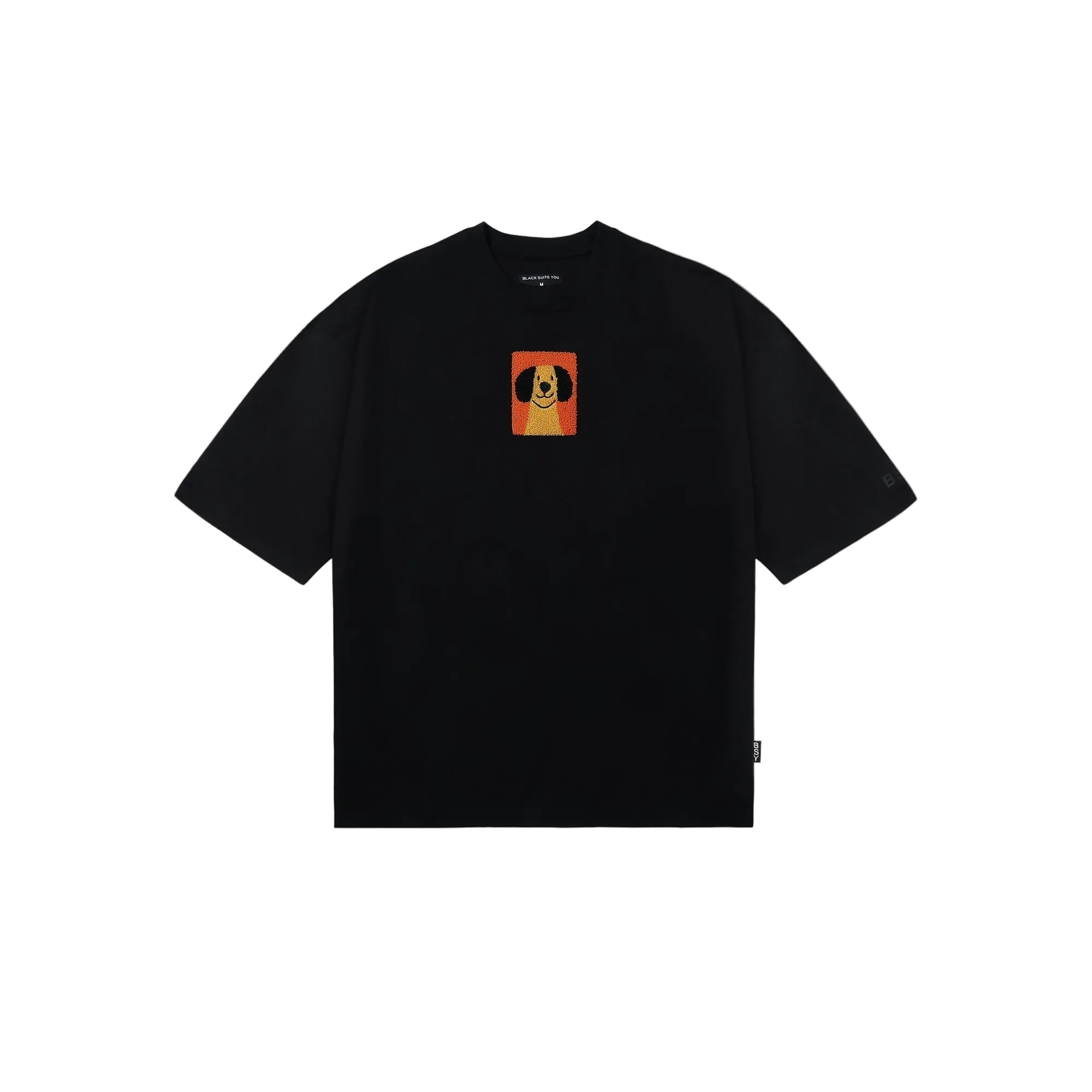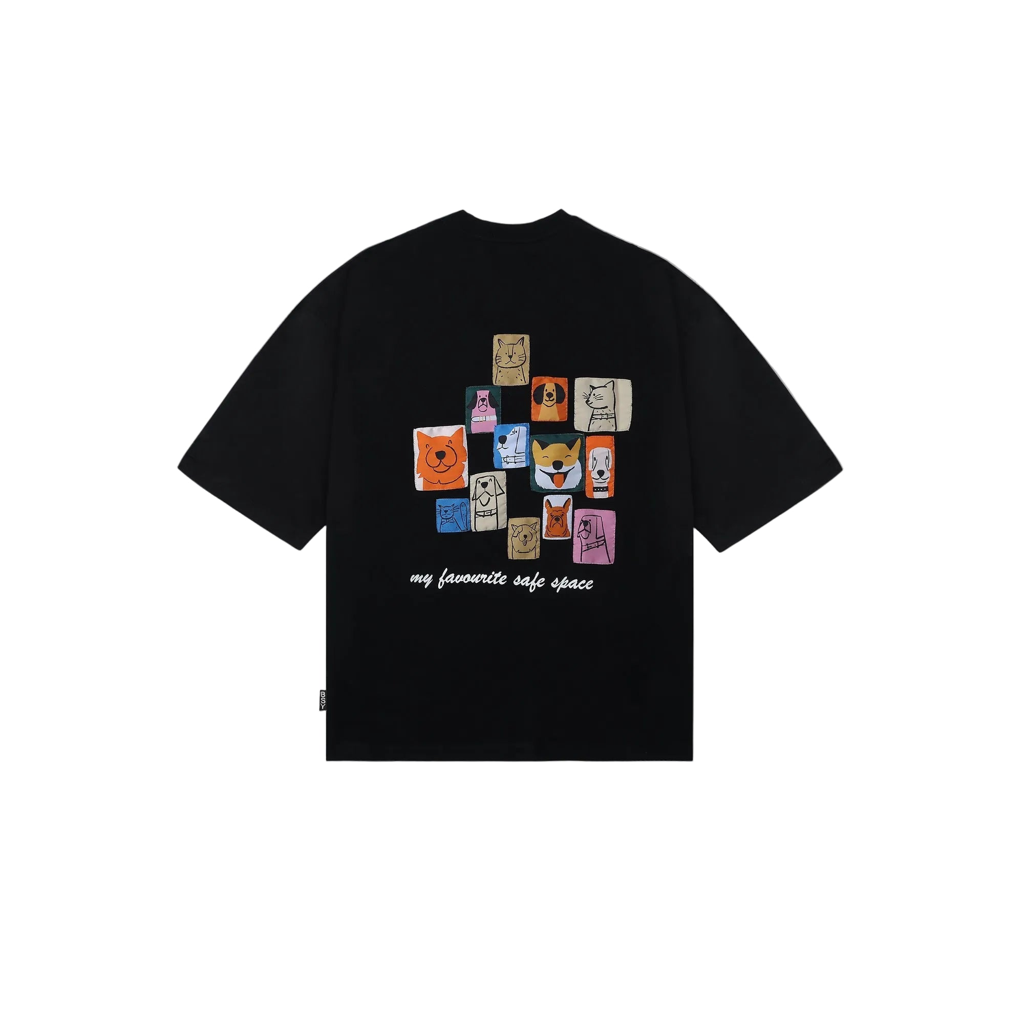 This dog t-shirt features towel embroidery on the chest and stitched dog badges on the back, finished with “my favourite safe space.” A premium cotton graphic tee designed to feel emotional, familiar, and deeply personal.