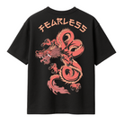 Loose-fittining t-shirt in black with a round neckline and short sleeves.Puff print on the front and back.
