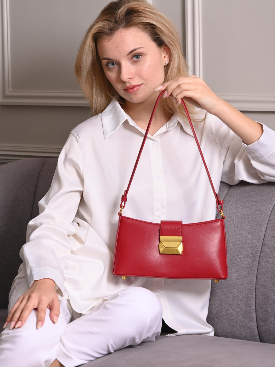 Felice - Ladies Baguette Bag, Faux Leather | Red