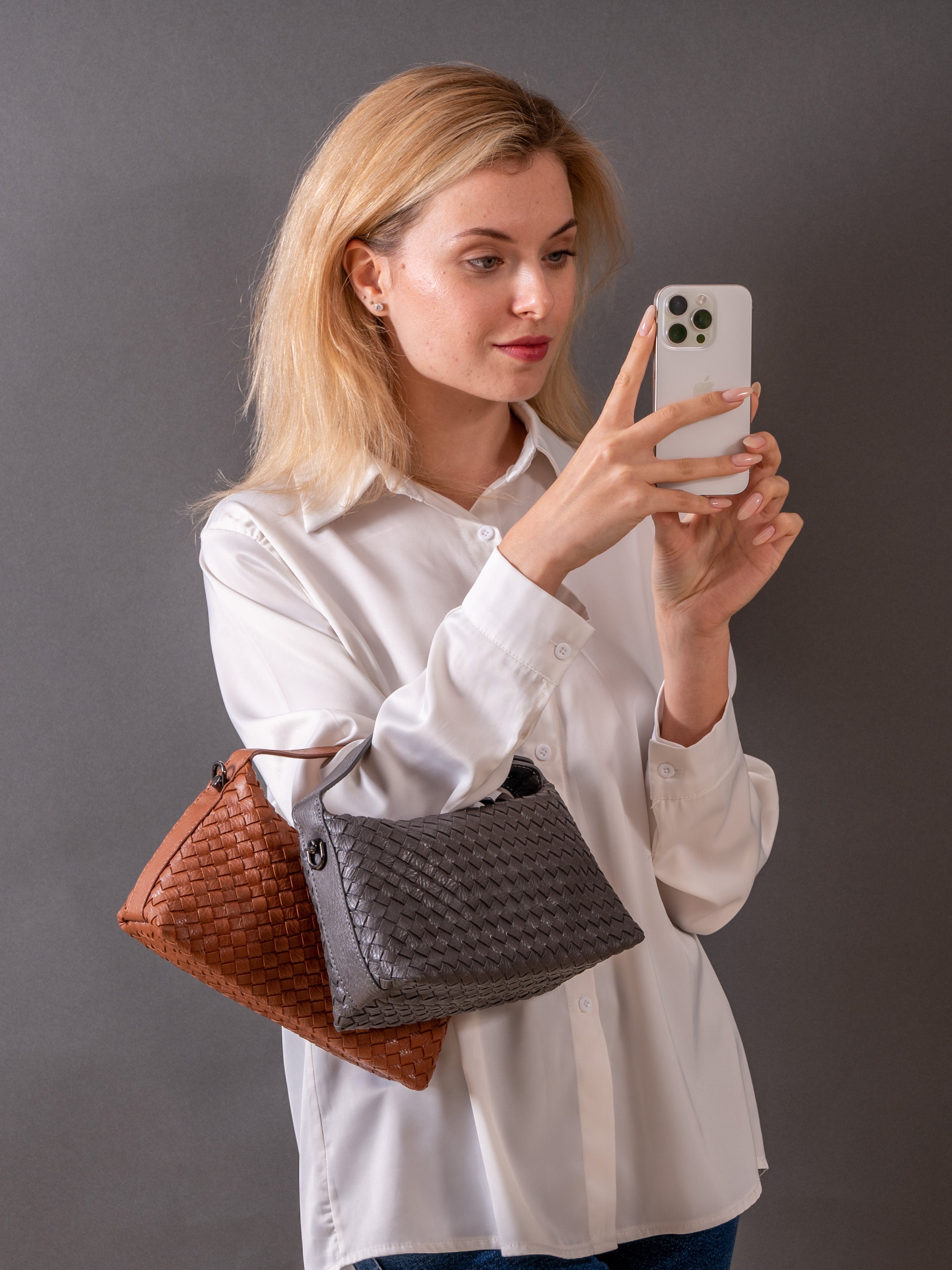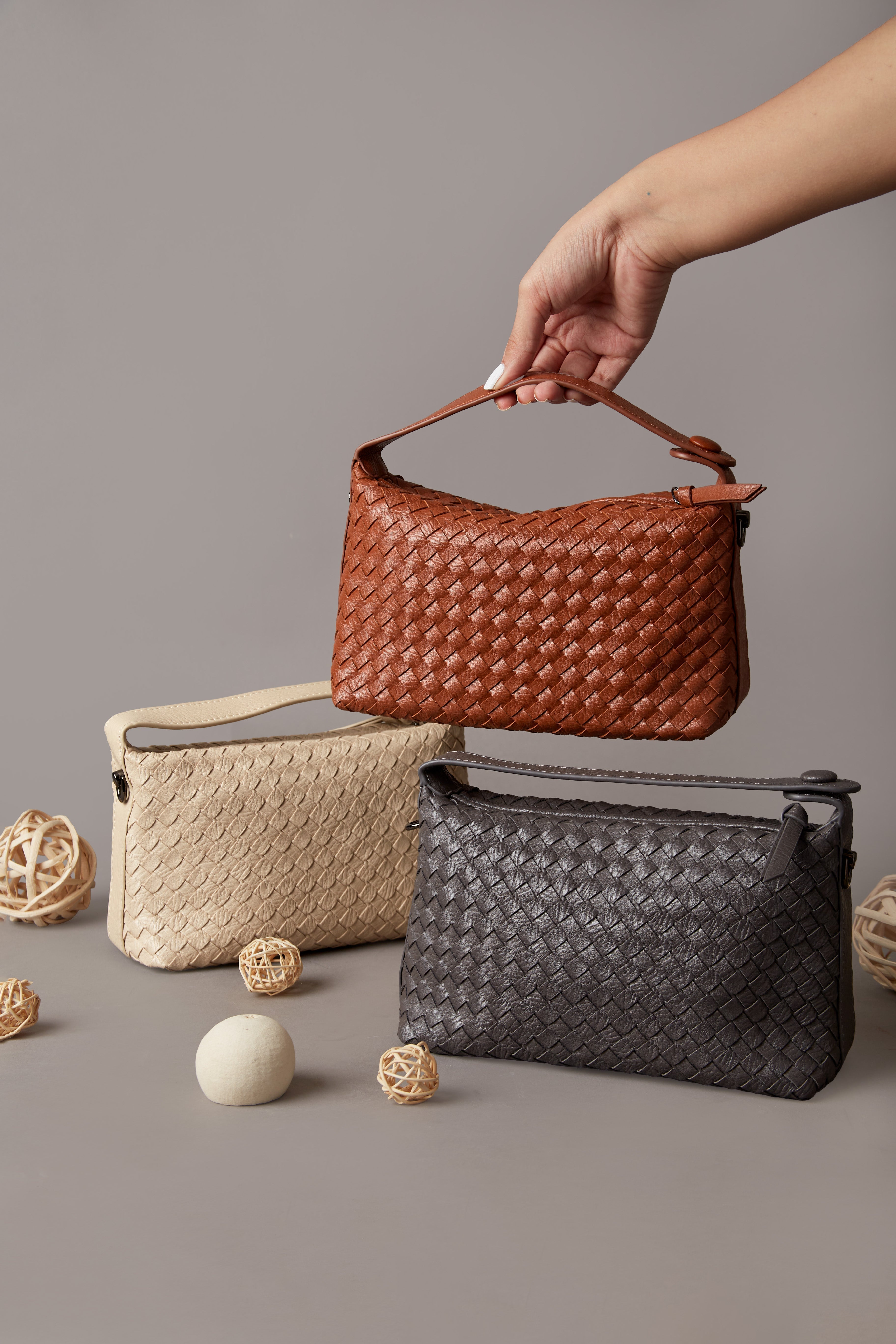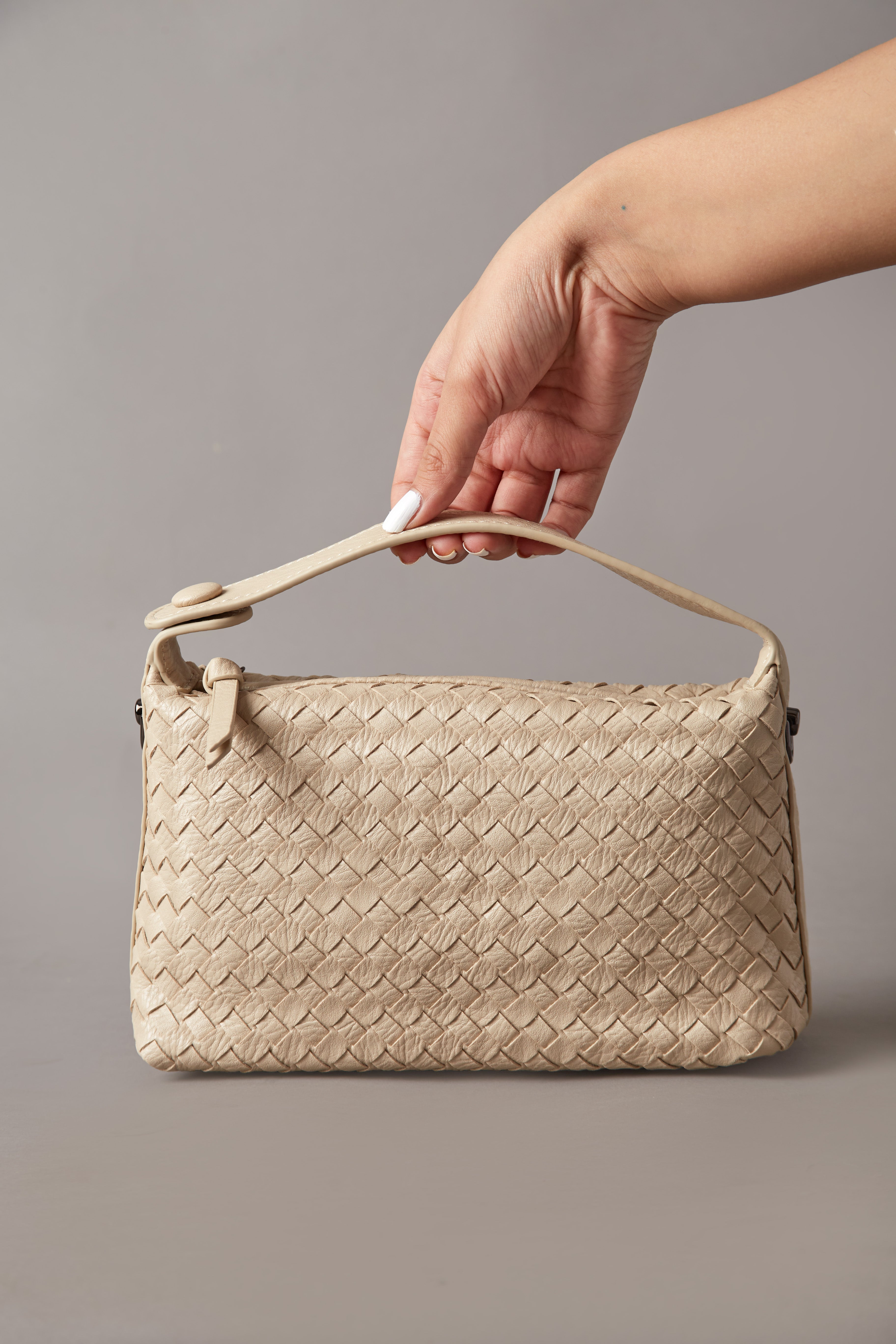 Elevate your everyday style with our chic Woven Faux Leather Handbag, Fero designed for versatility and elegance. Available in three stunning color combinations—Tan, Dark Grey, and Pearl White—this handbag complements any outfit, from casual to formal.