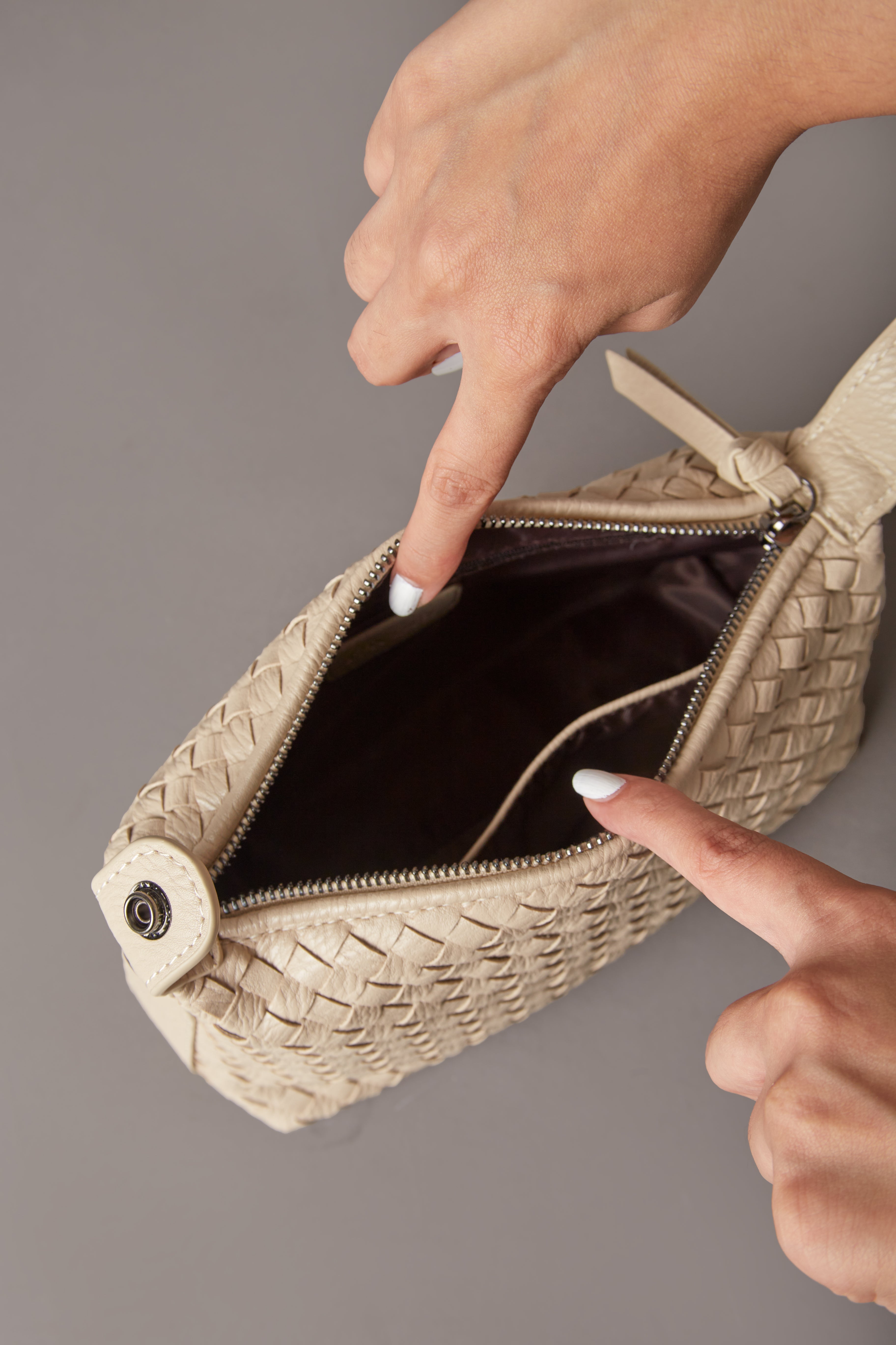Fero - Ladies Woven Handbag, Faux Leather | Pearl white