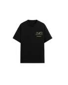 The Fiorello tee is crafted in black mid weight cotton with botanical putti logo graphic at the front and large botanical putti graphic at the back. Relaxed fit