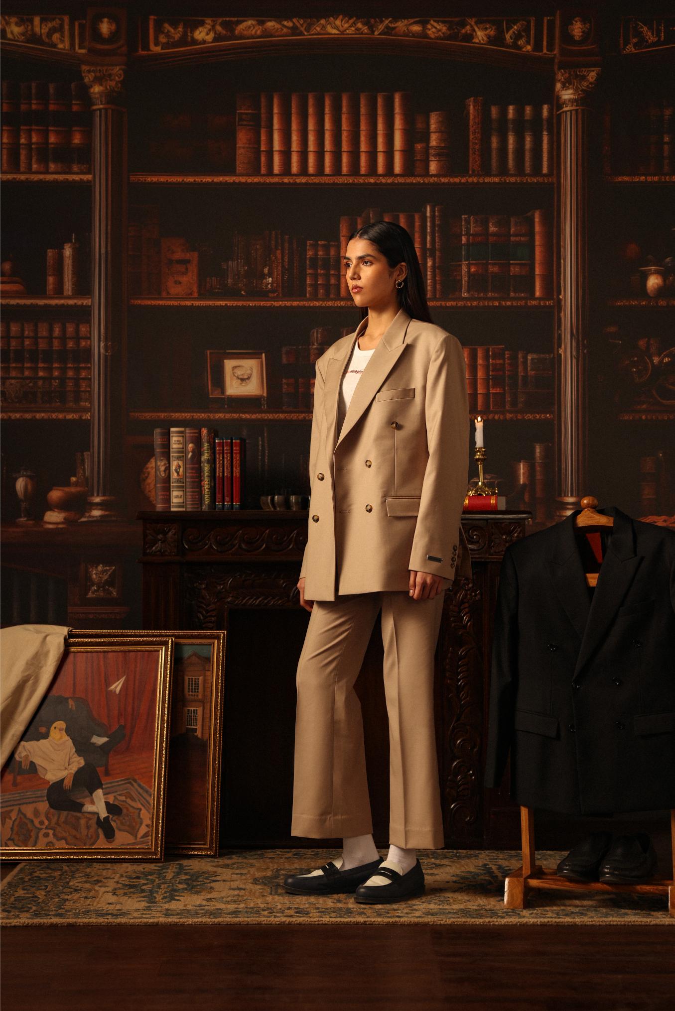 The Wake Your Dreams’ Flare-fit trousers crafted with sophisticated tailoring, make using our legacy VBC fabric. Featuring a clean and sturdy hidden hook closure, with an inner waistband lining to maintain structure during movement.