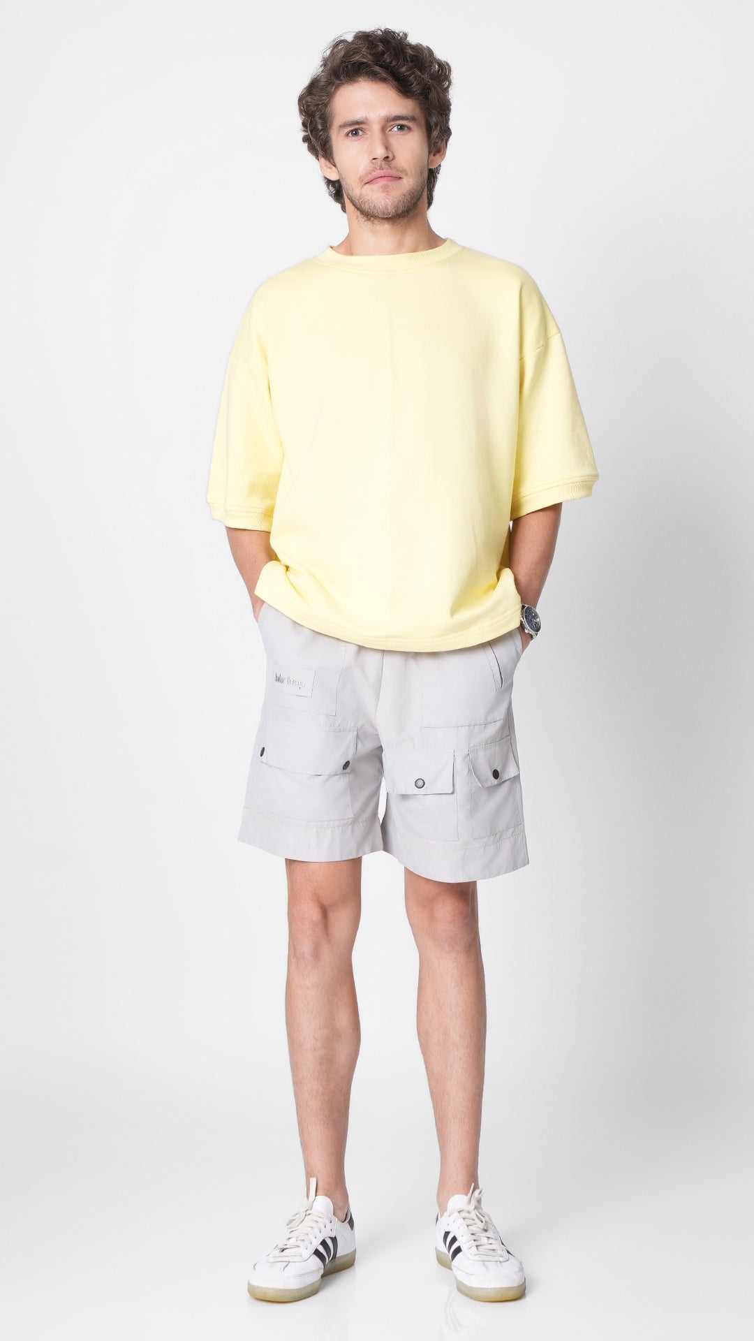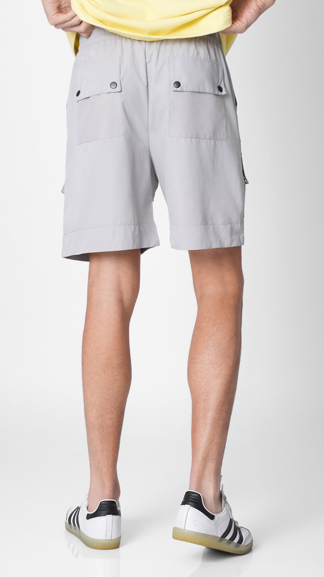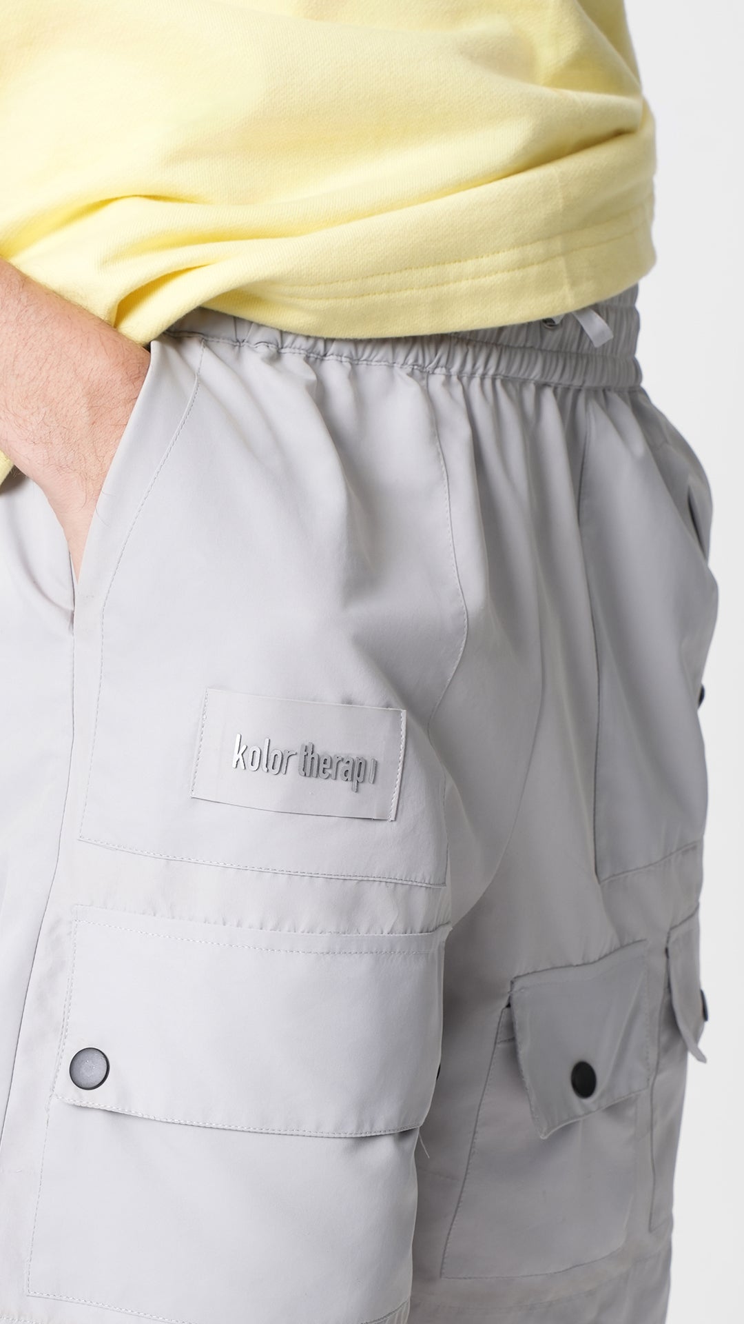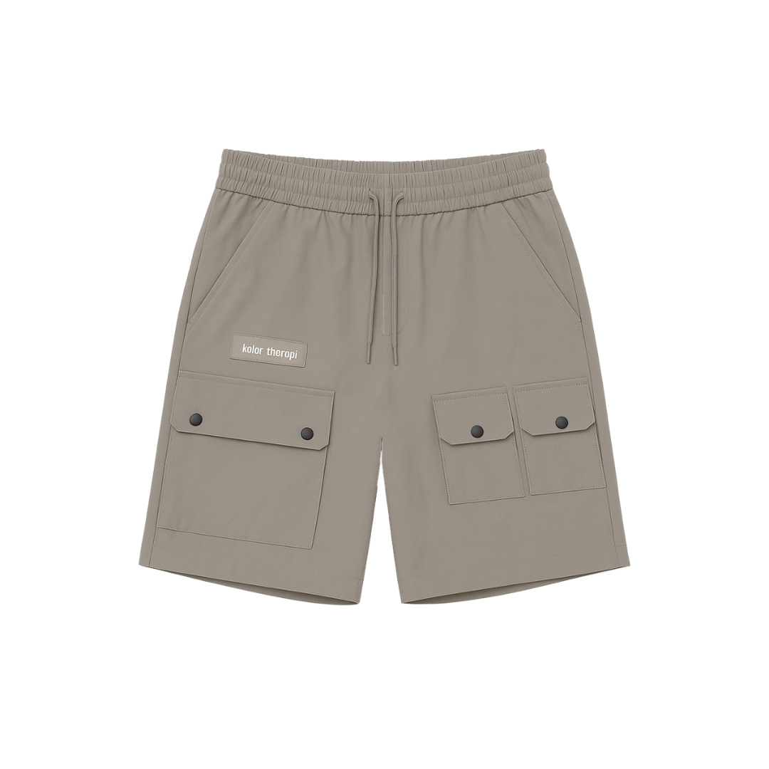 - Utility shorts in grey with multiple patch pocket and slit pockets