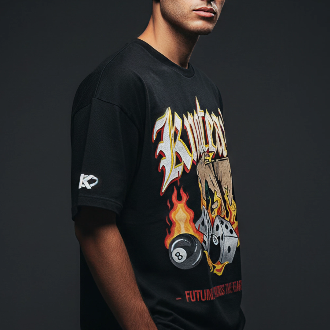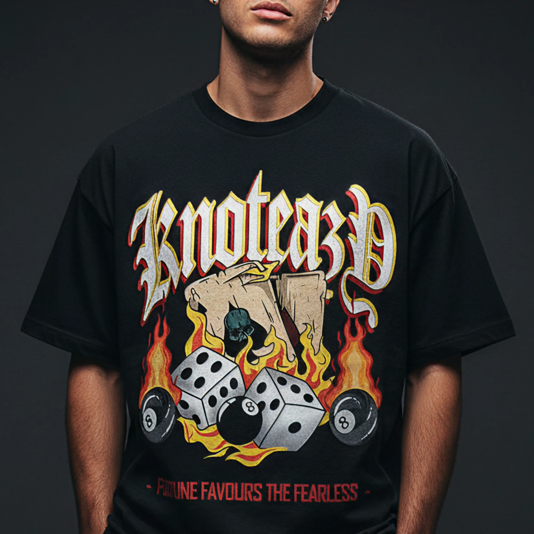 The “Fortune Favours the Fearless” tee is built for hustlers, dreamers, and risk-takers who know that the biggest wins come to those who dare. With bold graphics and a streetwear edge, it’s a reminder that comfort zones never made history.