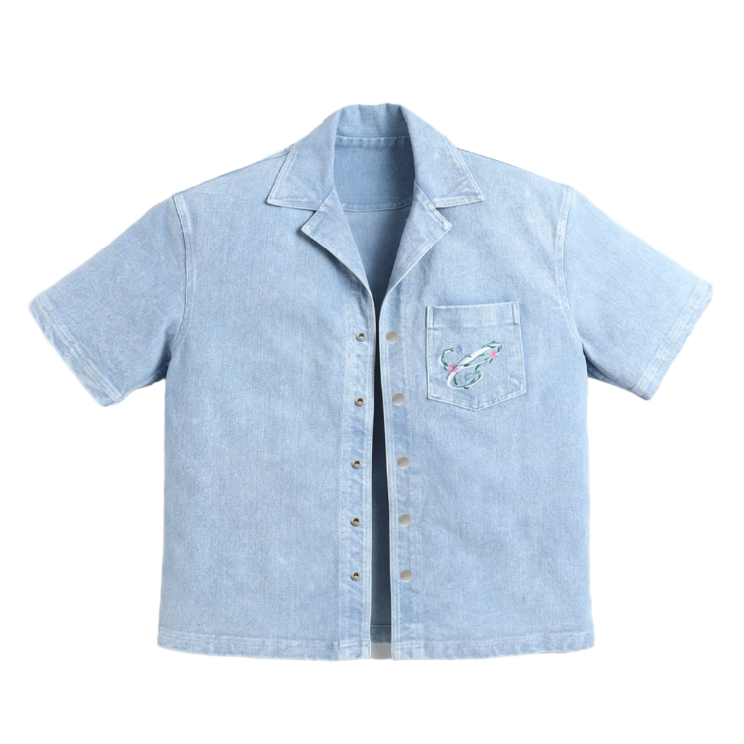 Denim oversized shirt with Croquis garden 3D embroidery