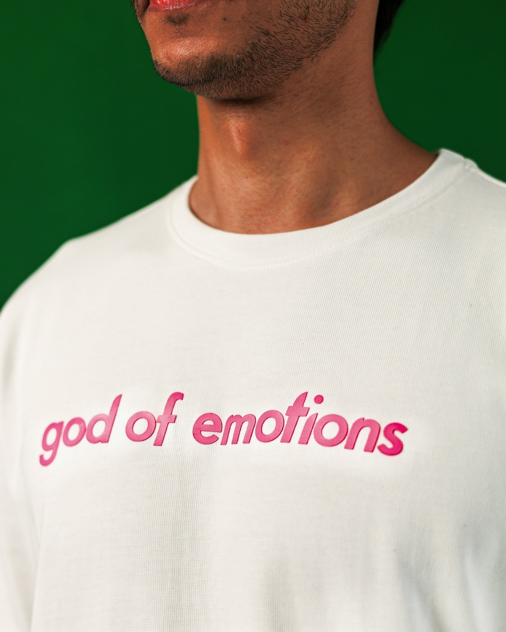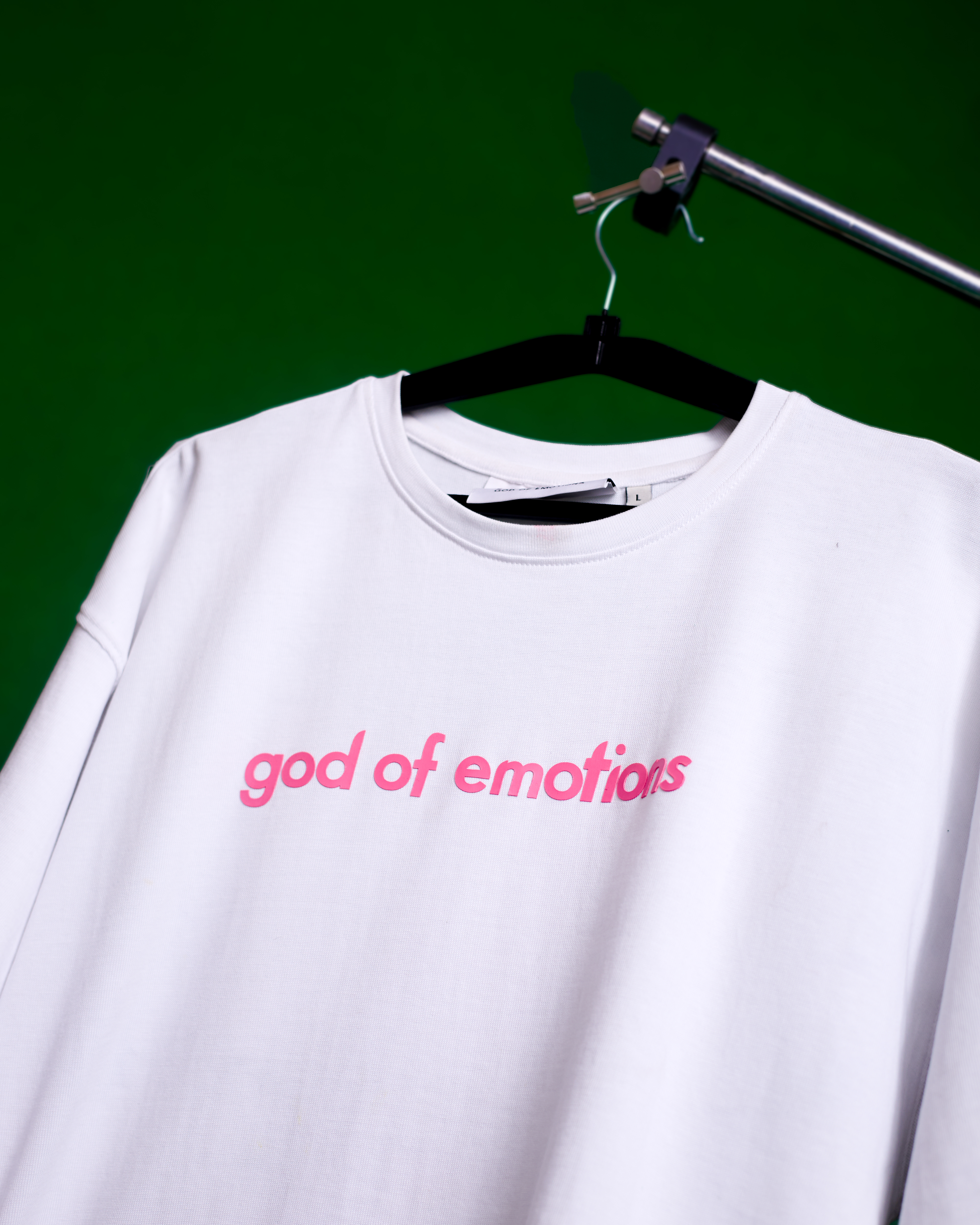 METICULOUSLY EMBROIDERED WITH 'GOD OF EMOTIONS' BRANDING, THIS PIECE STAYS TRUE TO SIZE, OFFERING A STRUCTURED, BOXY FIT. A CONTEMPORARY ART-DESIGNED GARMENT / MEANT TO BE WORN, REMEMBERED, AND FELT.
