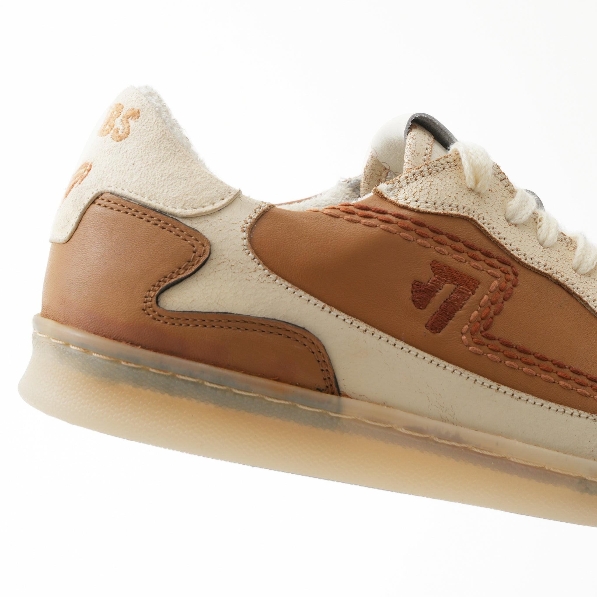 Branded heel tab with stitched “Badaam”