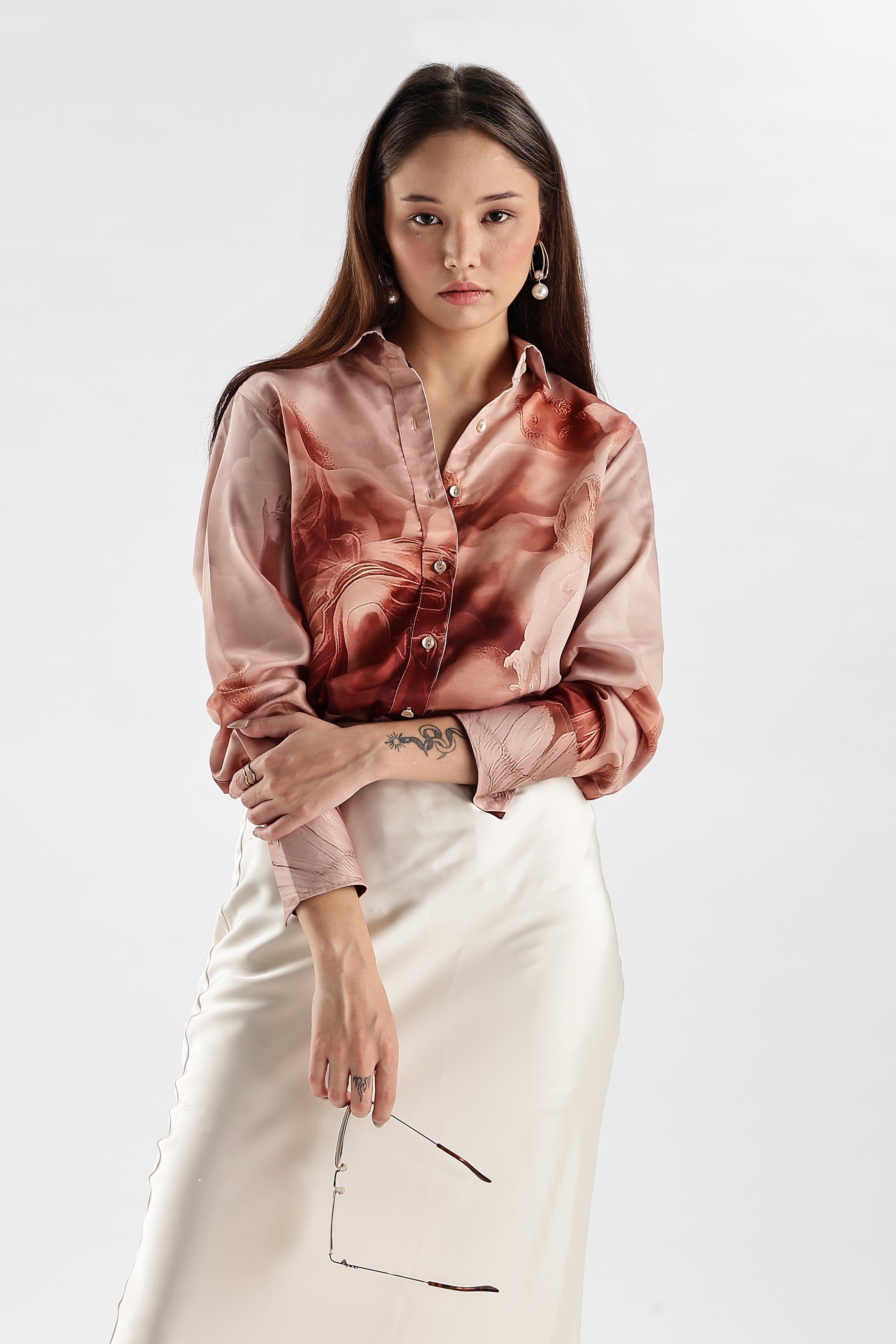 Embrace elegance and artistic expression with the Goddess of Dawn Art Shirt, a limited-edition masterpiece crafted from premium satin. Designed for the modern woman, this shirt features an exclusive IMHERE print that radiates creativity and sophistication, making it the perfect statement piece for any occasion.
