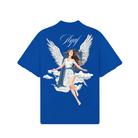 On the back, a breathtaking celestial artwork of a graceful angel floating among the clouds takes center stage, with FLYAF scripted above in heavenly detail.
