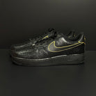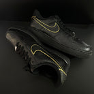 Indulge in luxury with our GOLD MOONROCK AF1. This black Nike AF1 is elegantly covered in tuxedo black glitter, accented by gold borders on the iconic swoosh for a touch of opulence.