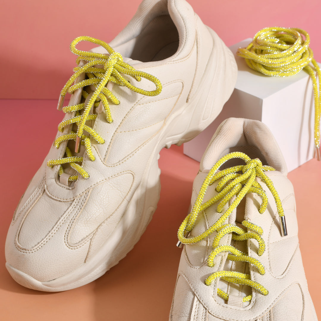 Add a touch of sparkle to your sneakers with our Lurex Covered Rope Shoelaces. These laces are made from high-quality materials that are both durable and vibrant. The rope-style design adds a unique texture to your shoes, while the shimmering Lurex material catches the light for a subtle yet eye-catching effect. Perfect for adding a touch of glamour to your everyday footwear or making a statement on a night out, these laces are a must-have for any fashion-forward sneakerhead.