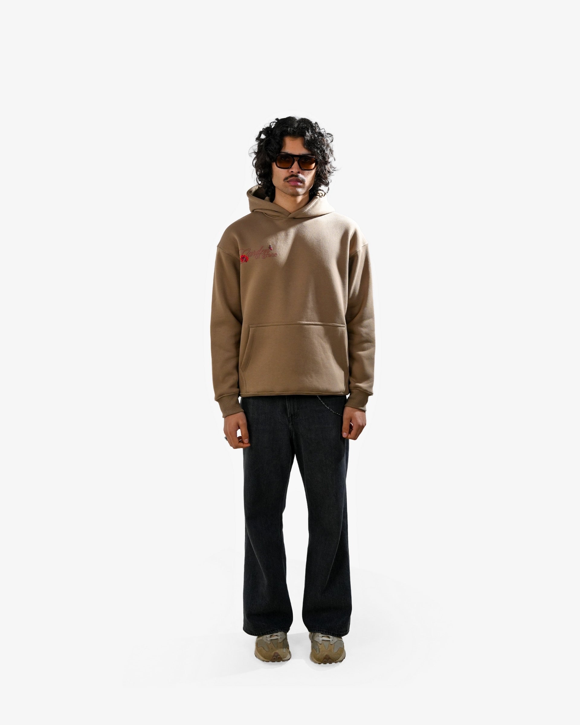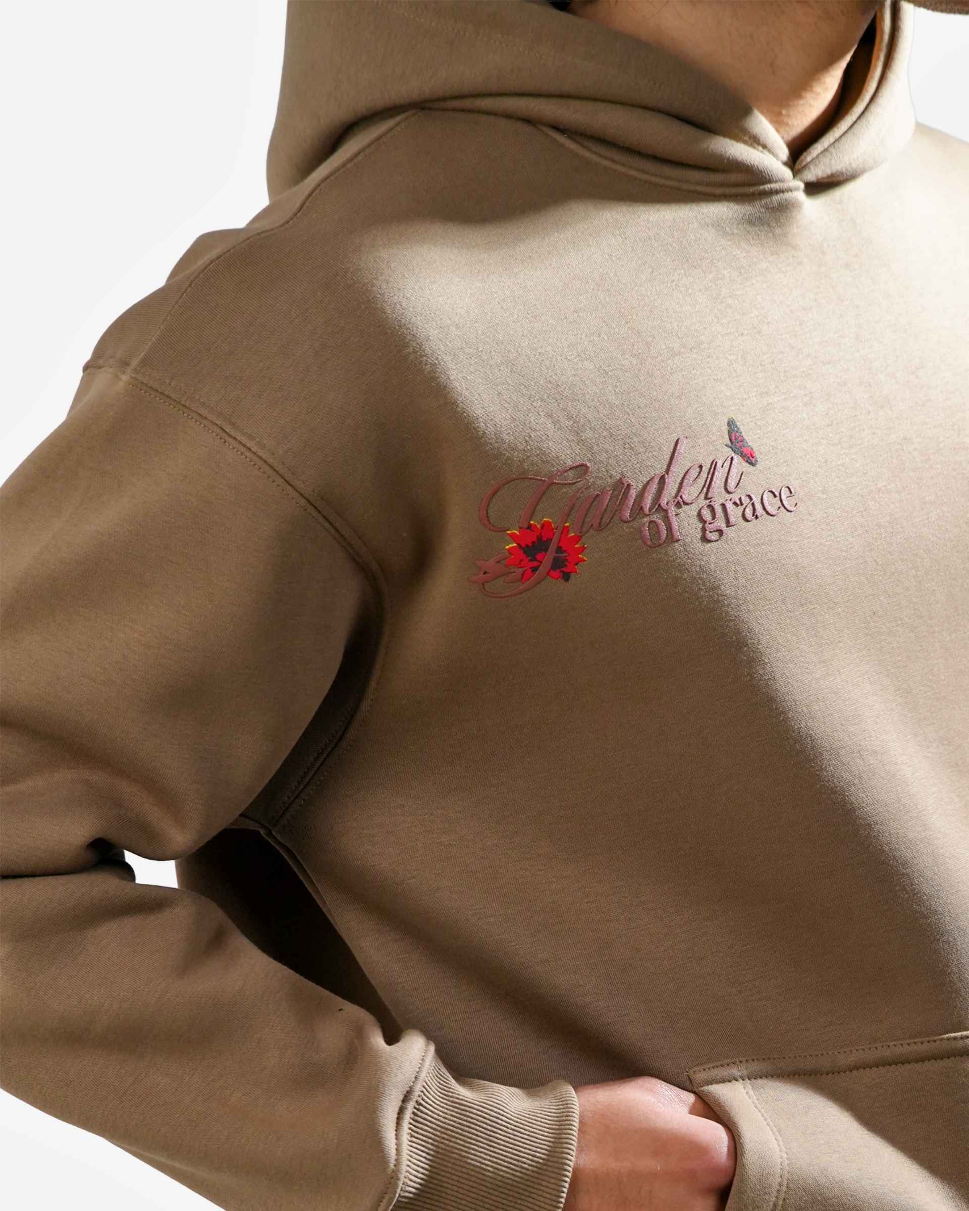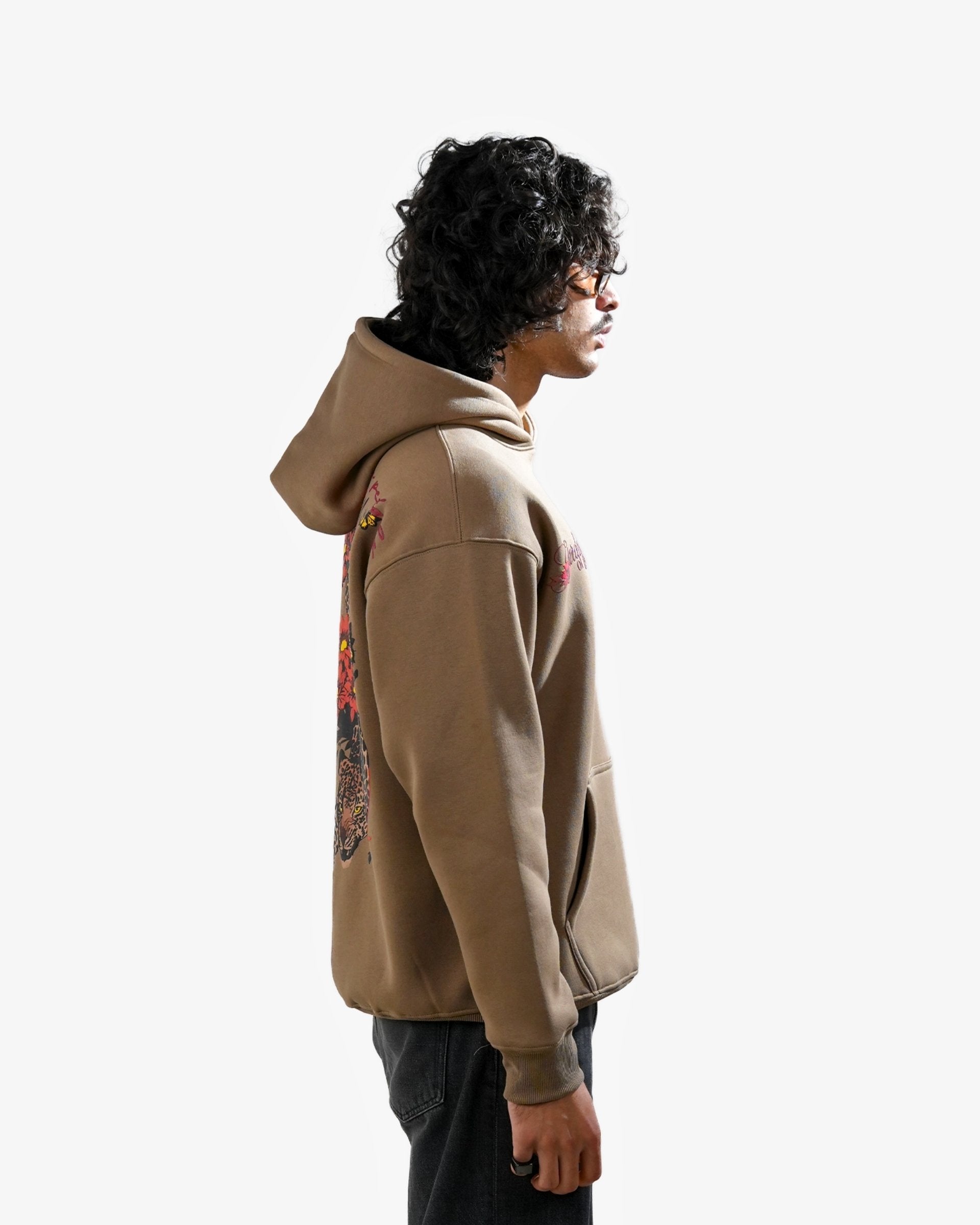 Graceful Might Hoodie - Khaki Oversized Printed Hoodie