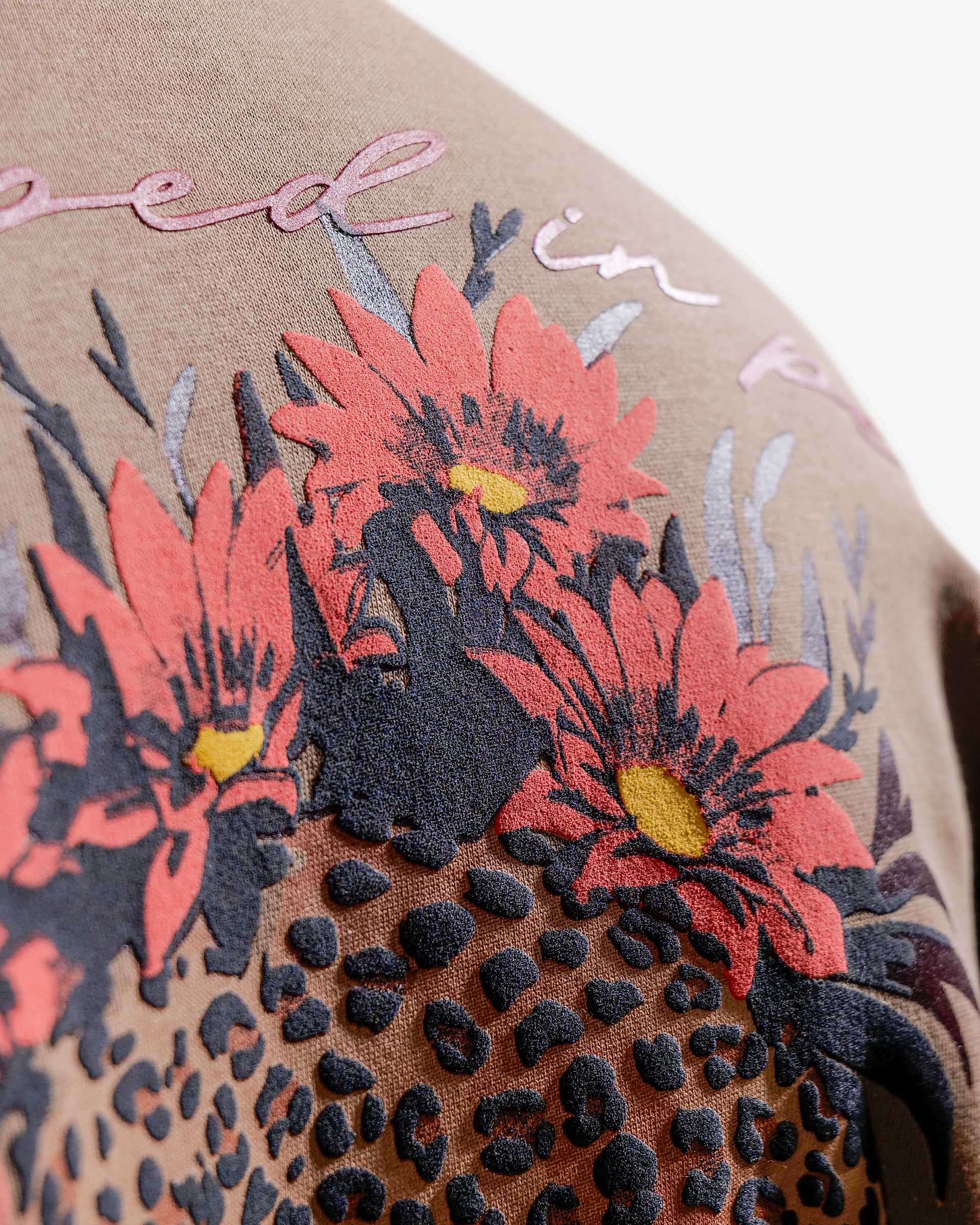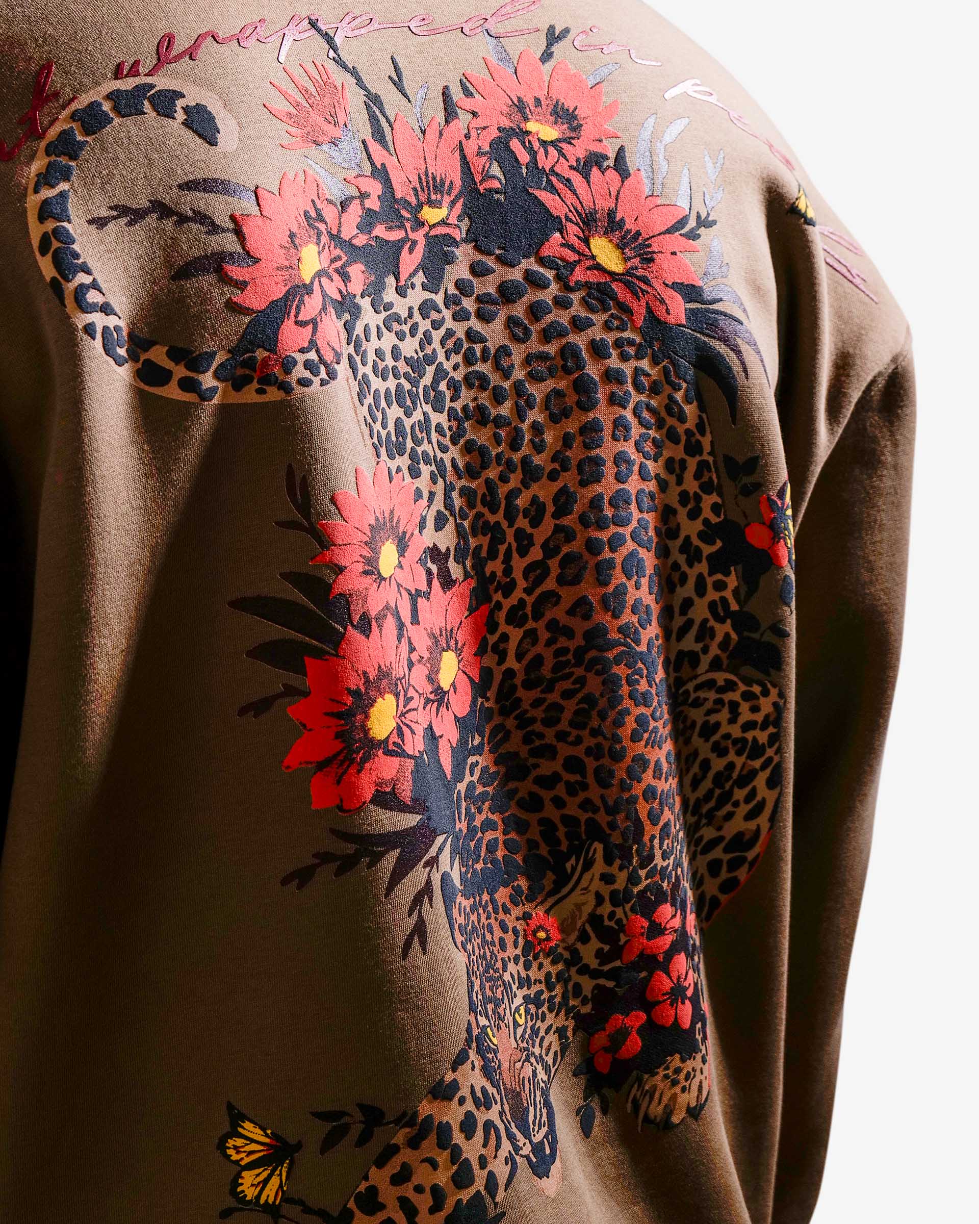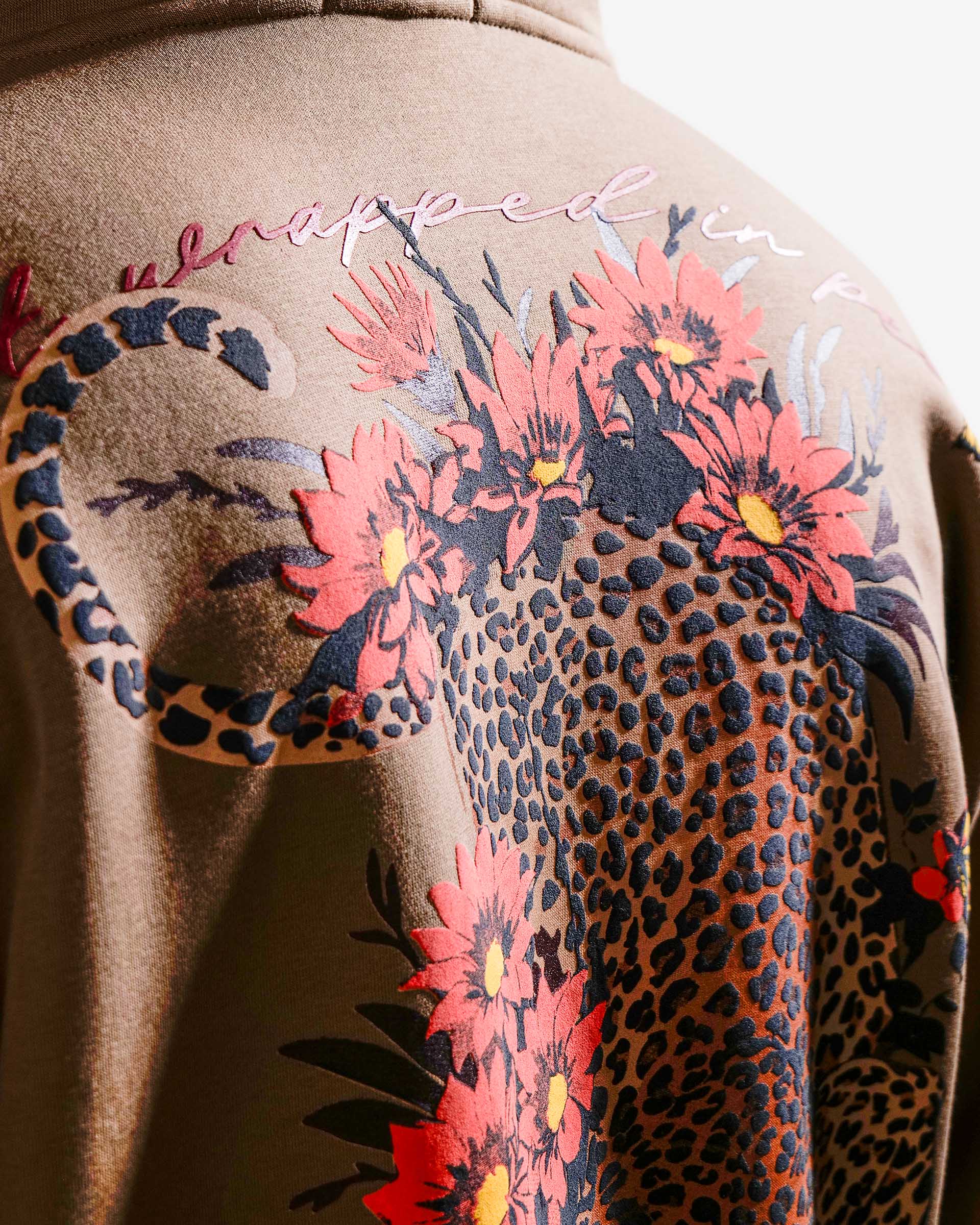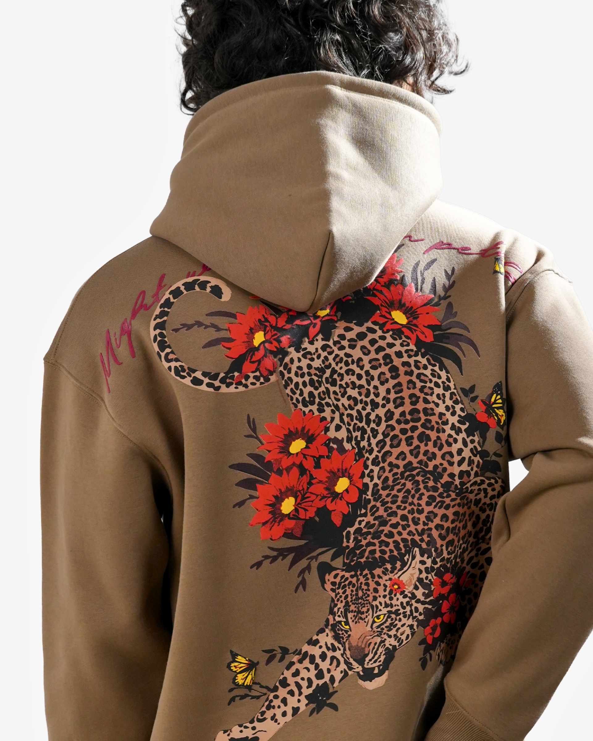 Graceful Might Hoodie - Khaki Oversized Printed Hoodie