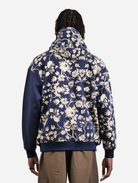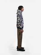 Gravestone Flower - Navy Blue Floral Print Drop Shoulder Unisex Oversized Hoodie