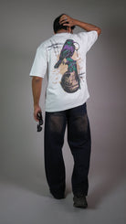 Crafted from 300 GSM heavyweight single jersey cotton, this tee blends rebellion with symbolism, a tiny character controlling a grenade, capturing the tension between peace and power. Acid-washed for depth and texture, it’s a bold, thought-provoking piece for those who wear their mindset, not just a fit.