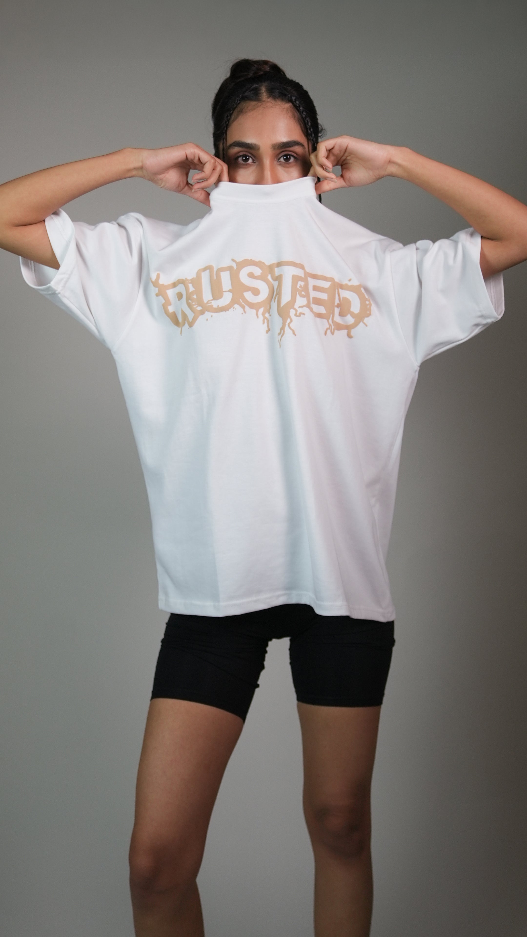 Crafted from 300 GSM heavyweight single jersey cotton, this tee blends rebellion with symbolism, a tiny character controlling a grenade, capturing the tension between peace and power. Acid-washed for depth and texture, it’s a bold, thought-provoking piece for those who wear their mindset, not just a fit.