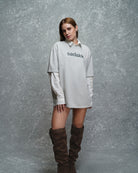 Logo Placement: Center chest in deep charcoal, with a second mark at the upper back, just below the neckline quiet, intentional, and exact.