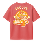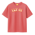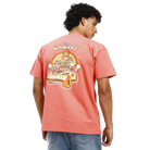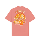 Loose-fittining t-shirt in peach with a round neckline and short sleeves.Puff print on the front and back.
